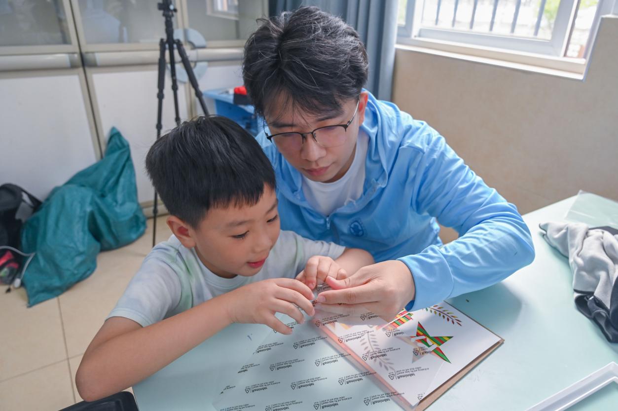 (實踐團(tuán)成員與小朋友一起完成手工制作)
