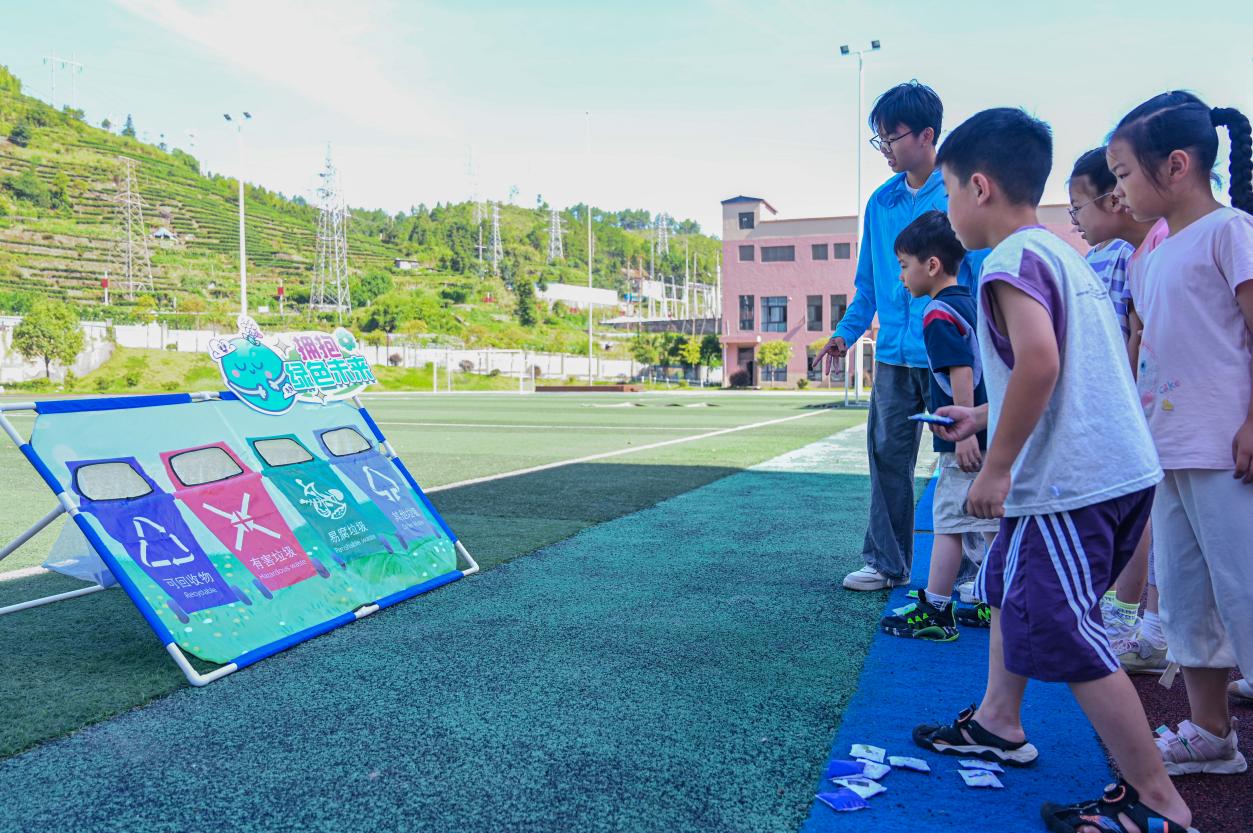 (實踐團(tuán)成員組織小朋友玩垃圾分類小游戲)