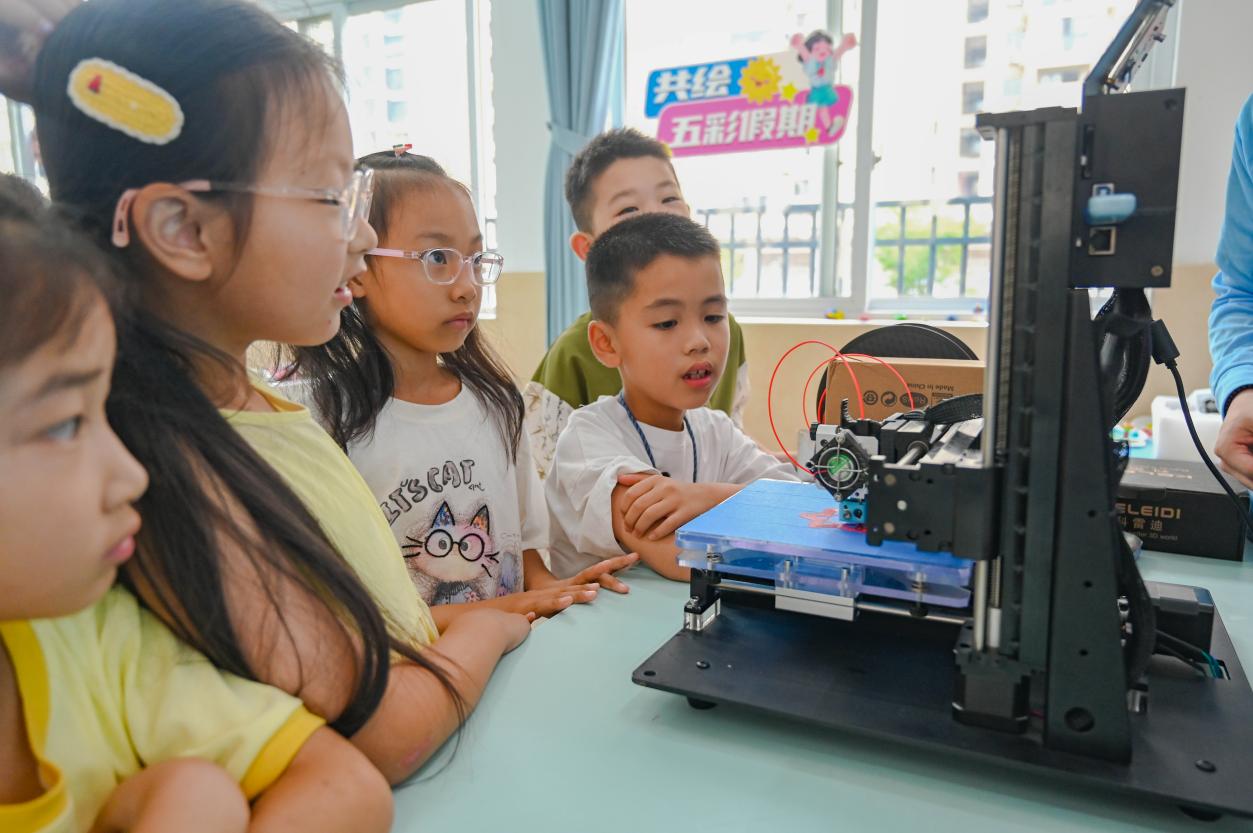 (實踐團(tuán)成員為小朋友展示3D打印制作過程)