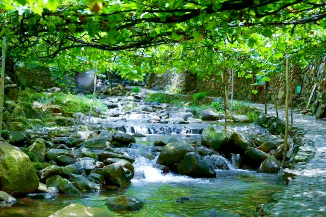 溪塔村,一個(gè)鑲嵌在青山綠水間的畬族古村落,這里不僅自然風(fēng)光旖旎,更蘊(yùn)藏著豐富的畬族文化瑰寶。溪塔之地,刺葡萄與水蜜桃產(chǎn)業(yè)蔚然興盛。當(dāng)?shù)厝松钪O因地制宜之道,于溪面巧設(shè)鐵絲網(wǎng)架,引刺葡萄藤蔓沿架攀援,枝蔓交纏、綠葉相覆,最終形成 “溝上綠蔭蔽日,溝下流水淙淙” 的獨(dú)特景致。