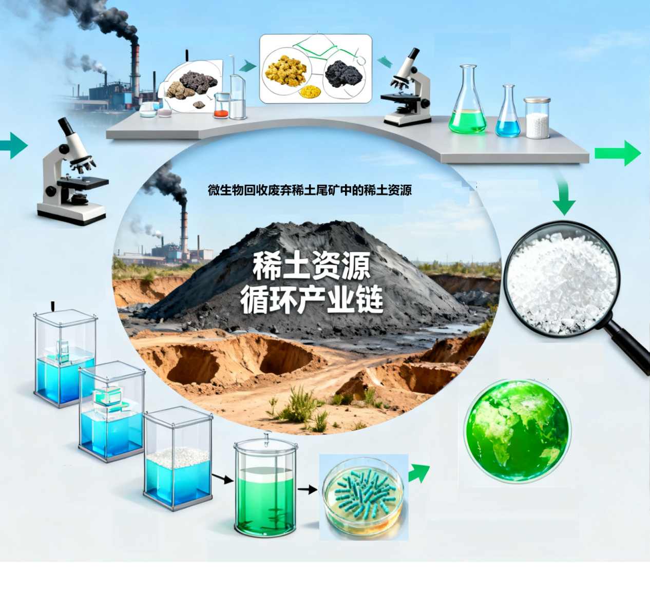 1. 機(jī)理研究: 通過(guò)實(shí)驗(yàn)探究微生物浸出廢棄稀土尾礦礦渣中稀土元素的效率,并表征分析微生物-礦物界面作用機(jī)制,為工藝設(shè)計(jì)提供理論指導(dǎo)。