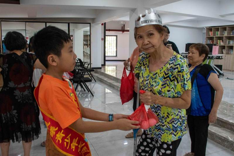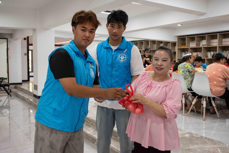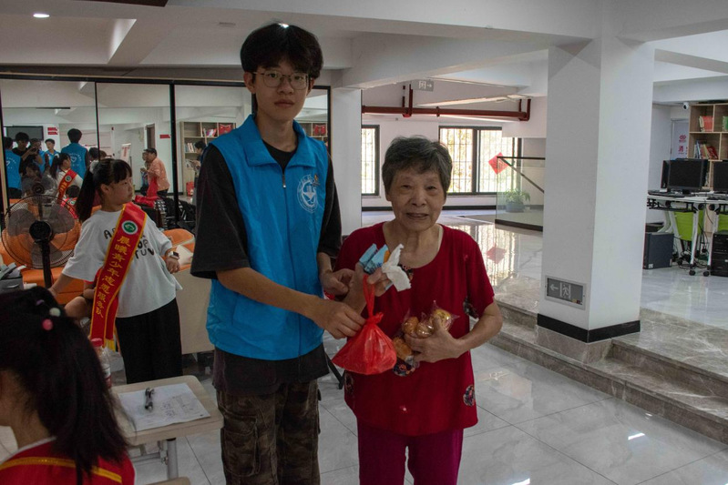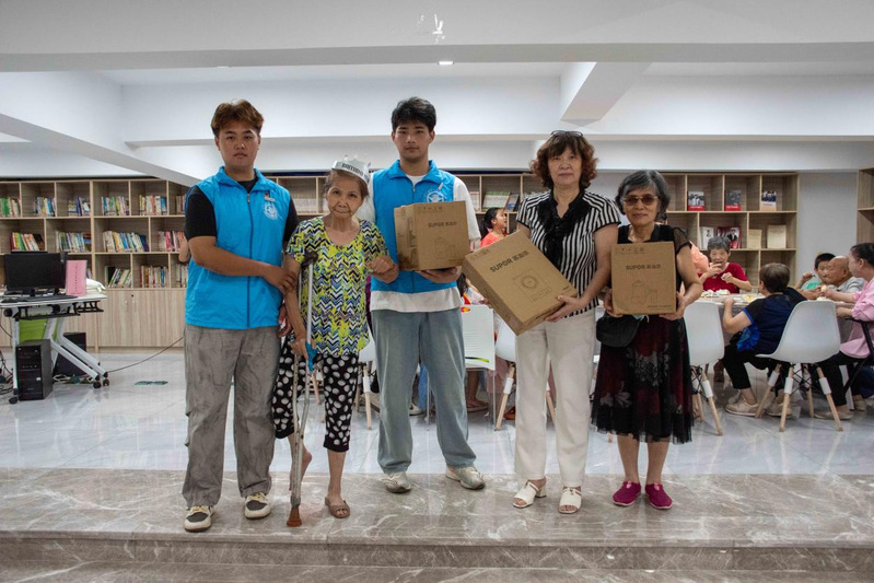 活動(dòng)接近尾聲,志愿者們將愛(ài)心禮物一一送到老人手中。禮物雖不貴重,卻飽含心意。學(xué)生們俯身與老人交談,傾聽(tīng)他們的故事,擁抱告別。
