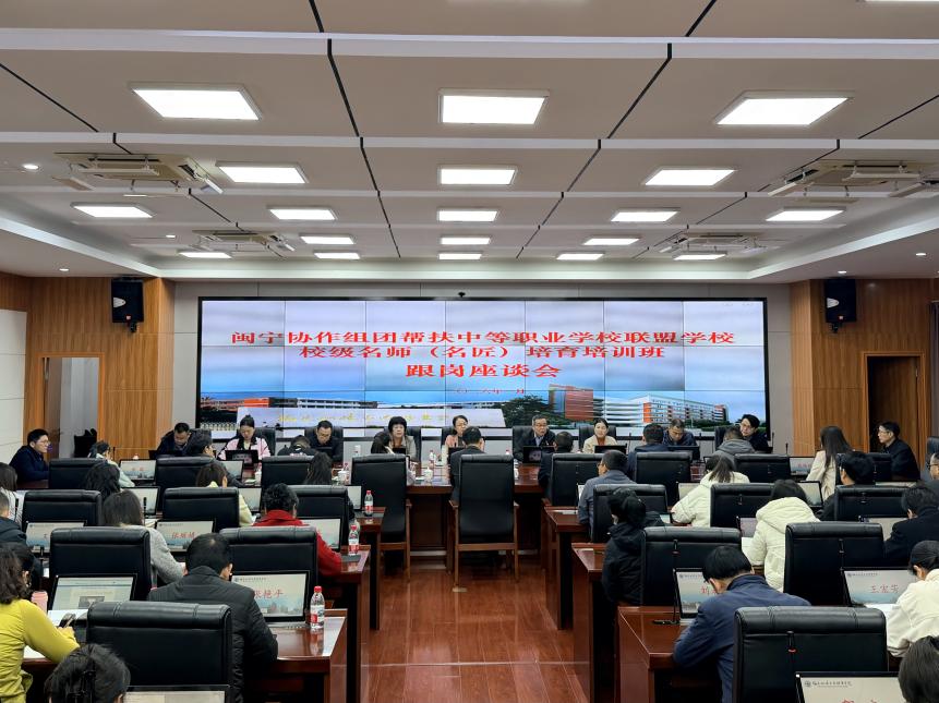 1月14日上午,閩寧協(xié)作組團幫扶中等職業(yè)學(xué)校聯(lián)盟學(xué)校校級名師(名匠)培育班跟崗培訓(xùn)座談會在學(xué)院行政樓6樓會議室順利召開。學(xué)院院長陳群教授、副院長陳常暉教授,教務(wù)處、教師工作部及相關(guān)二級學(xué)院負責人,與培訓(xùn)班全體學(xué)員齊聚一堂,圍繞即將啟動的跟崗實踐環(huán)節(jié)展開交流。座談會由副院長陳常暉主持。