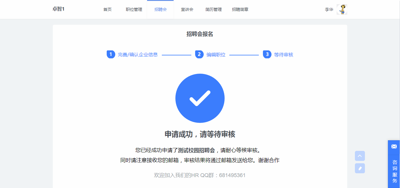職位信息→等待審核通過。