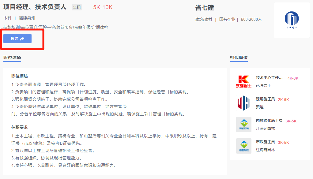 點(diǎn)擊相應(yīng)職位名稱可以查看職位詳情并投遞簡歷。