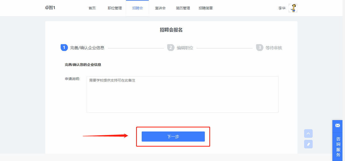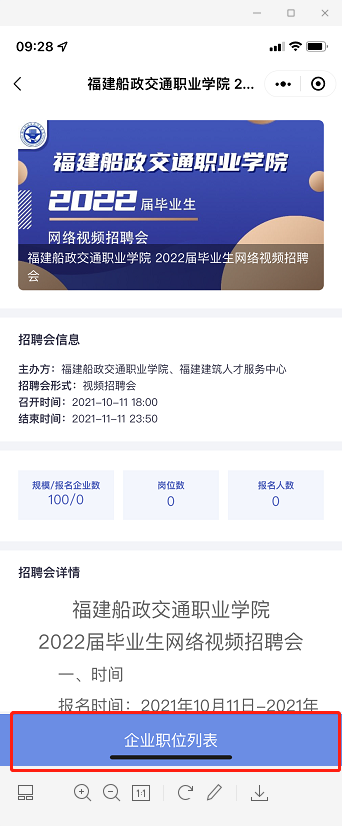 (2)在招聘會(huì)詳情頁面,點(diǎn)擊【報(bào)名招聘會(huì)】,開始報(bào)名。