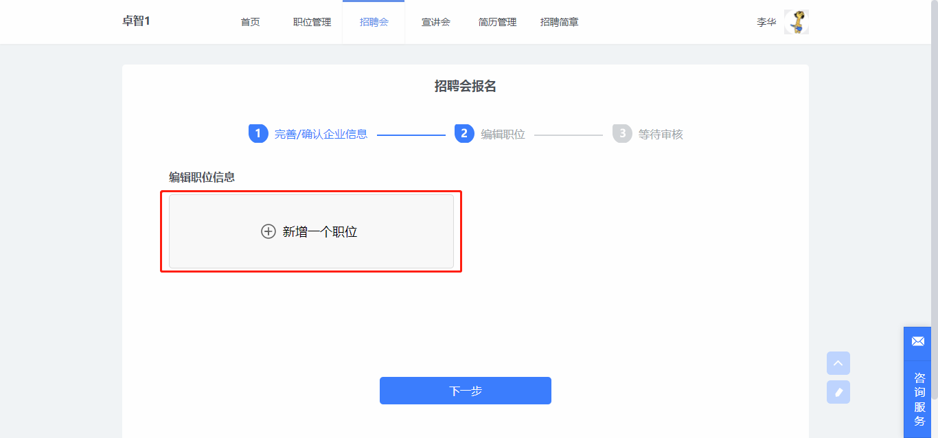 第二步編輯職位信息,職位可以新建也可以直接從已有職位中獲取,編輯好職位后,可以刪除職位也可以再次修改職位信息。