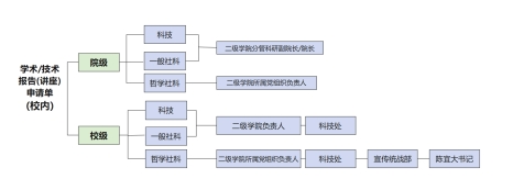 1.各教學(xué)單位應(yīng)按規(guī)定組織教職工、校外學(xué)者、專(zhuān)家開(kāi)展學(xué)術(shù)/技術(shù)報(bào)告(講座),由主講者或者講座組織者在OA辦事大廳上填寫(xiě)《學(xué)術(shù)/技術(shù)報(bào)告(講座)申請(qǐng)單》,按照審批流程進(jìn)行審批,學(xué)術(shù)/技術(shù)報(bào)告(講座)時(shí)間在不影響正常教學(xué)的情況下,統(tǒng)一安排在每周三下午、周六和周天,講座必須在學(xué)校教室舉行,地點(diǎn)由各二級(jí)學(xué)院自行協(xié)調(diào)解決。