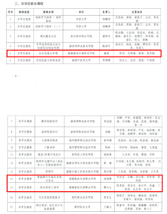 近日,福建省終身教育促進(jìn)委員會(huì)公布《2024年省級(jí)繼續(xù)教育數(shù)字化精品課程》,共認(rèn)定139門課程為2024年省級(jí)繼續(xù)教育數(shù)字化精品課程,其中,學(xué)歷繼續(xù)教育課程37門、非學(xué)歷教育課程41門、職業(yè)技能培訓(xùn)課程22門、社區(qū)(老年)教育課程39門。我校非學(xué)歷教育課程《安全急救與護(hù)理》《新能源汽車高壓系統(tǒng)與安全》《供水管道工培訓(xùn)》、社區(qū)(老年)教育課程《晚年出行新模式》共四門課程成功入選。