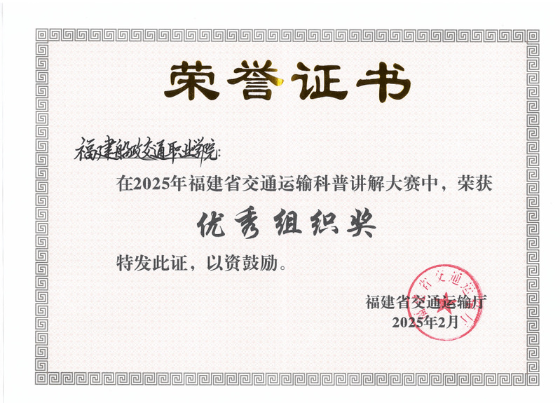 通過此次參加福建省交通運輸科普講解大賽,不僅展示了我校教師在交通運輸領(lǐng)域的專業(yè)素養(yǎng)和科普能力,也增進了我校與行業(yè)間的溝通和交流。未來,我校將持續(xù)加強科普工作,培養(yǎng)更多優(yōu)秀的科普人才,為推動交通運輸科學知識的普及和傳播貢獻力量。