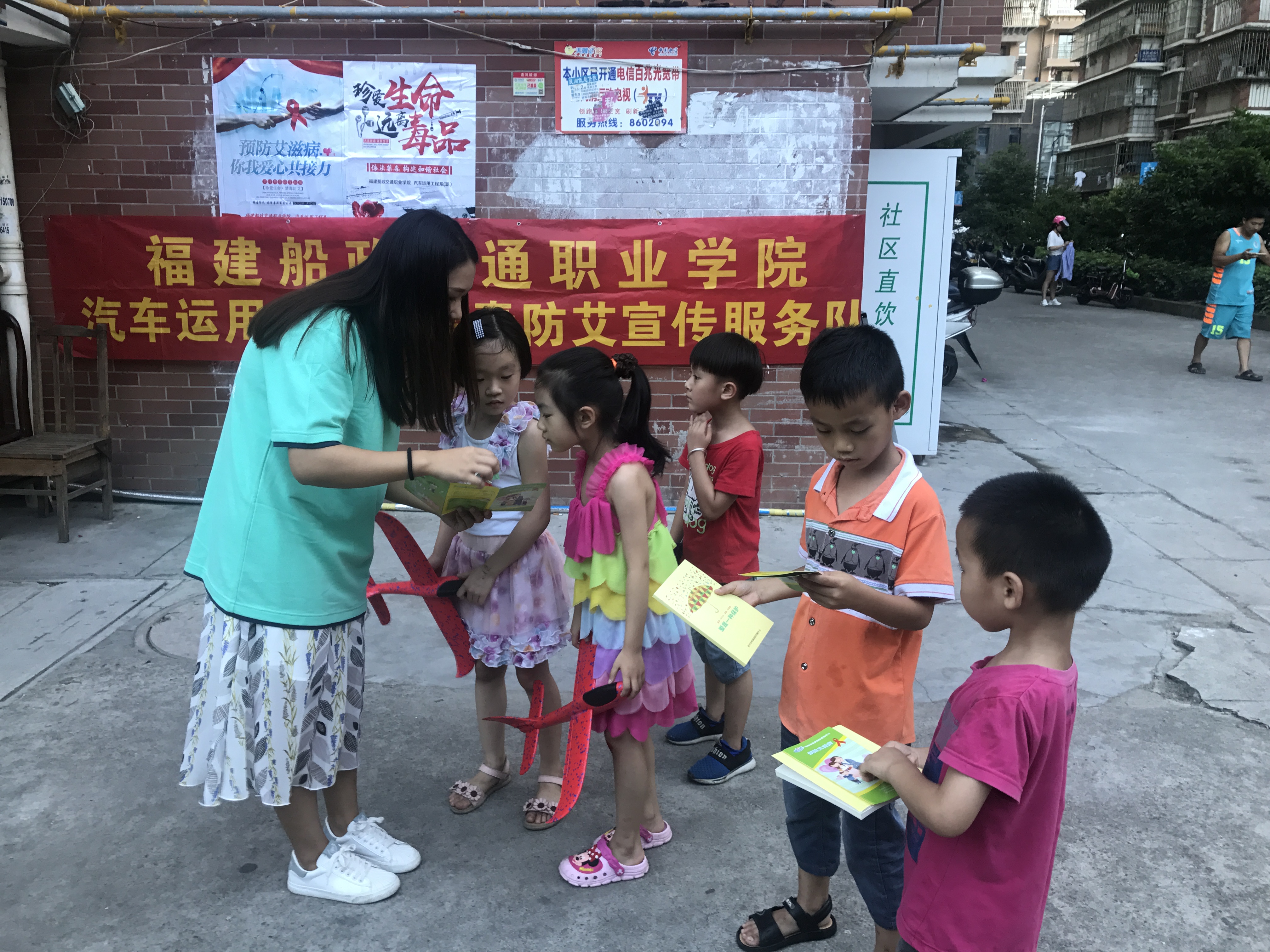 7月10日,我系宣傳隊在延平區(qū)錦繡佳園小區(qū)開展了禁毒防艾的宣傳,把預防艾滋、抵制毒品的常識傳遞到小朋友的認知世界中去,同時也提高了當?shù)鼐用駥痉腊恼J識。