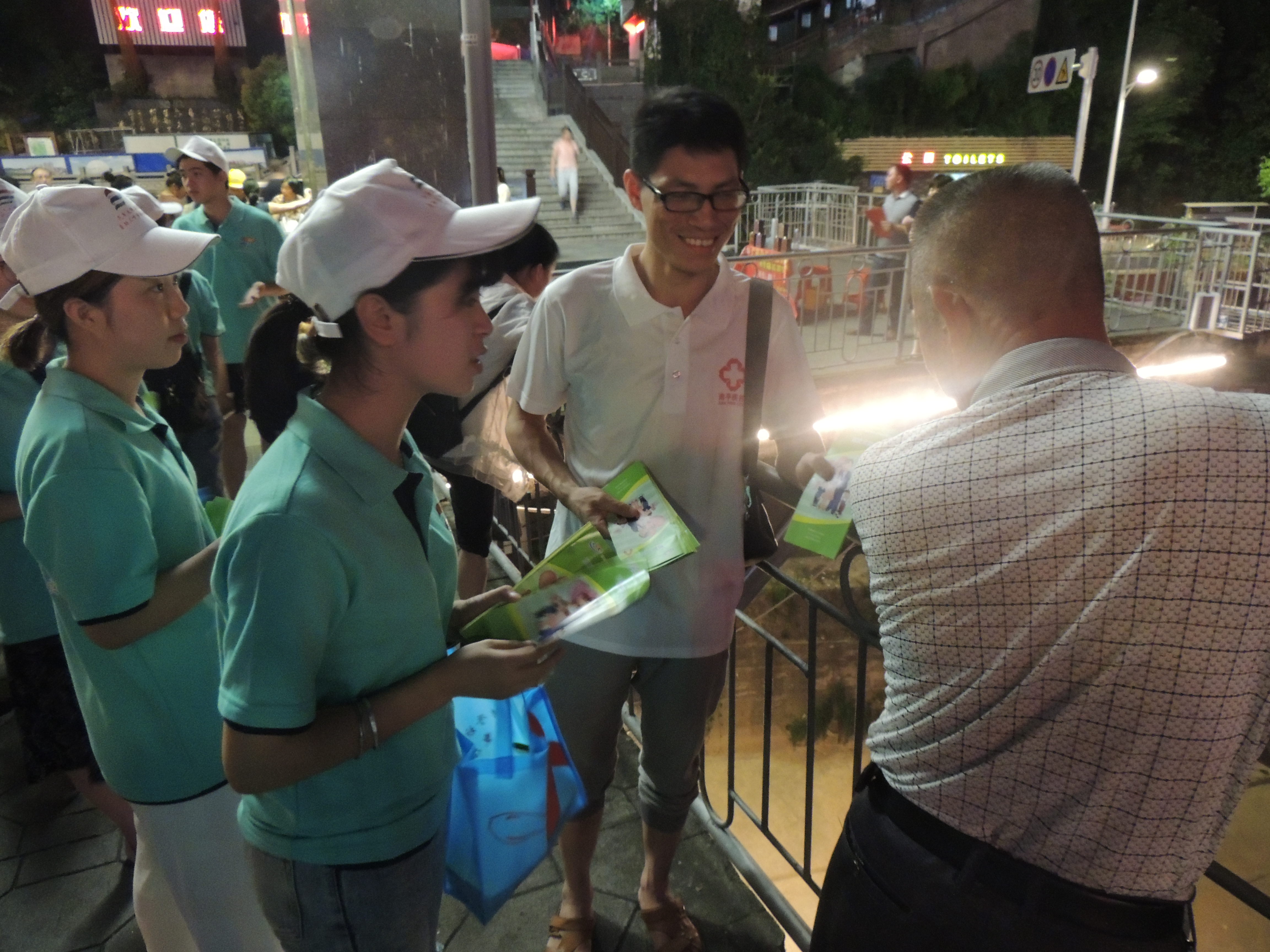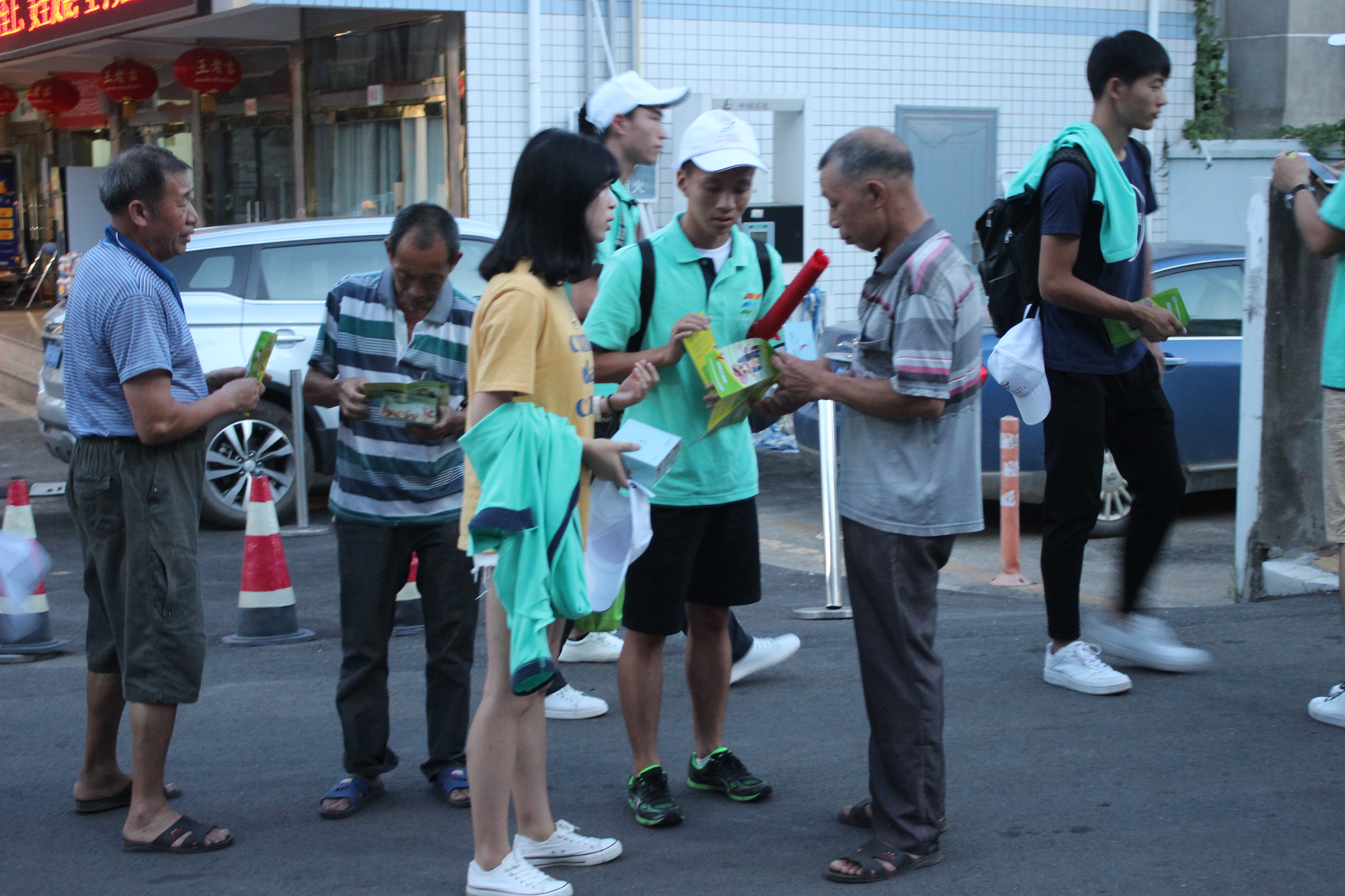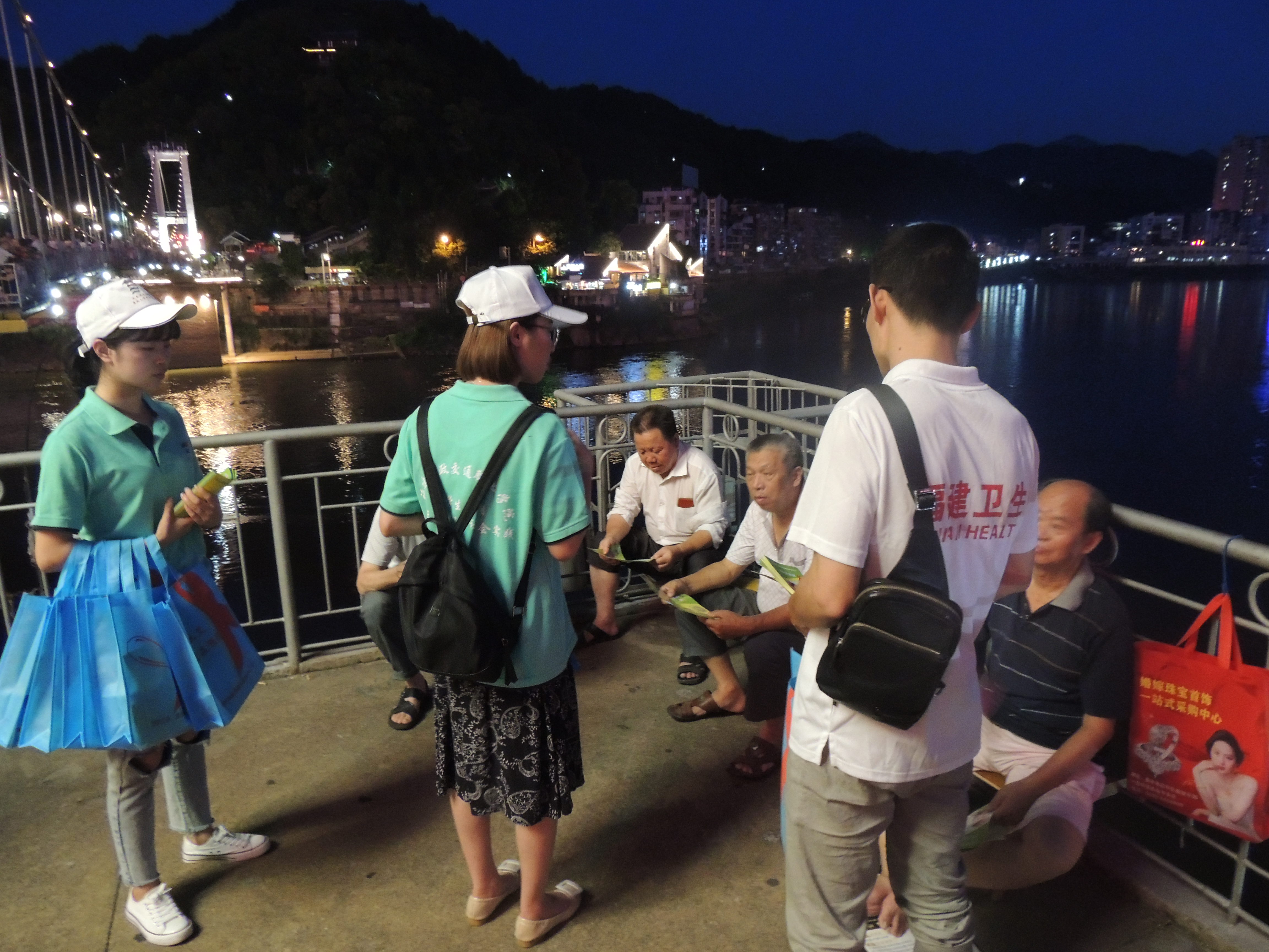 7月9日當天并同南平市疾病控制中心的科研室主任和數(shù)位醫(yī)師及我們實踐隊領隊沈曉家老師以及實踐團的師生進行多點宣傳。在疾控中心醫(yī)師的防艾知識普及下,我們得知南平市艾滋發(fā)病率多在40歲以上的中老年人,我系宣傳隊根據(jù)這一特點,選擇下午到傍晚在中老年人活動的密集區(qū)的公園、社區(qū)開展禁毒防艾的宣傳活動。