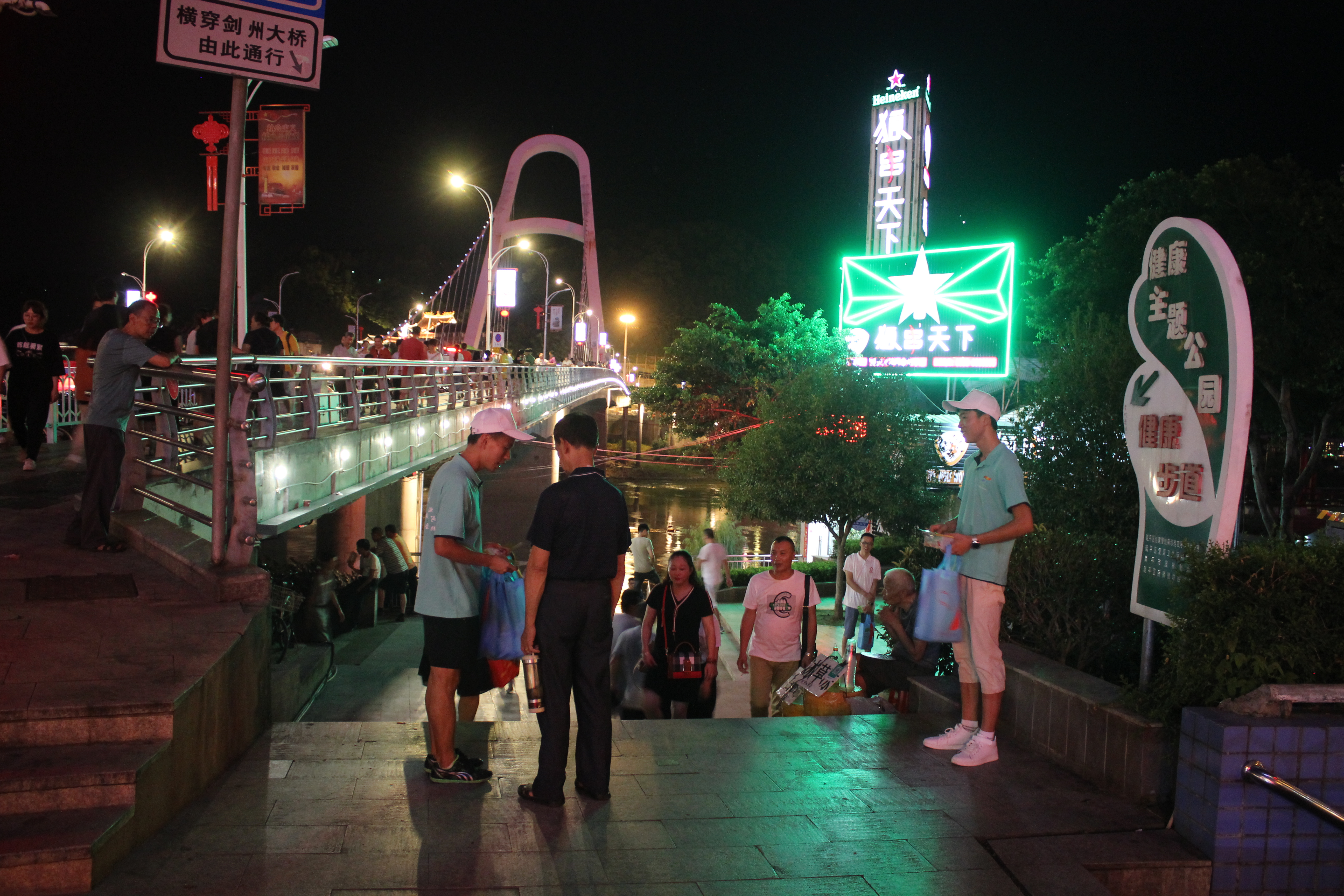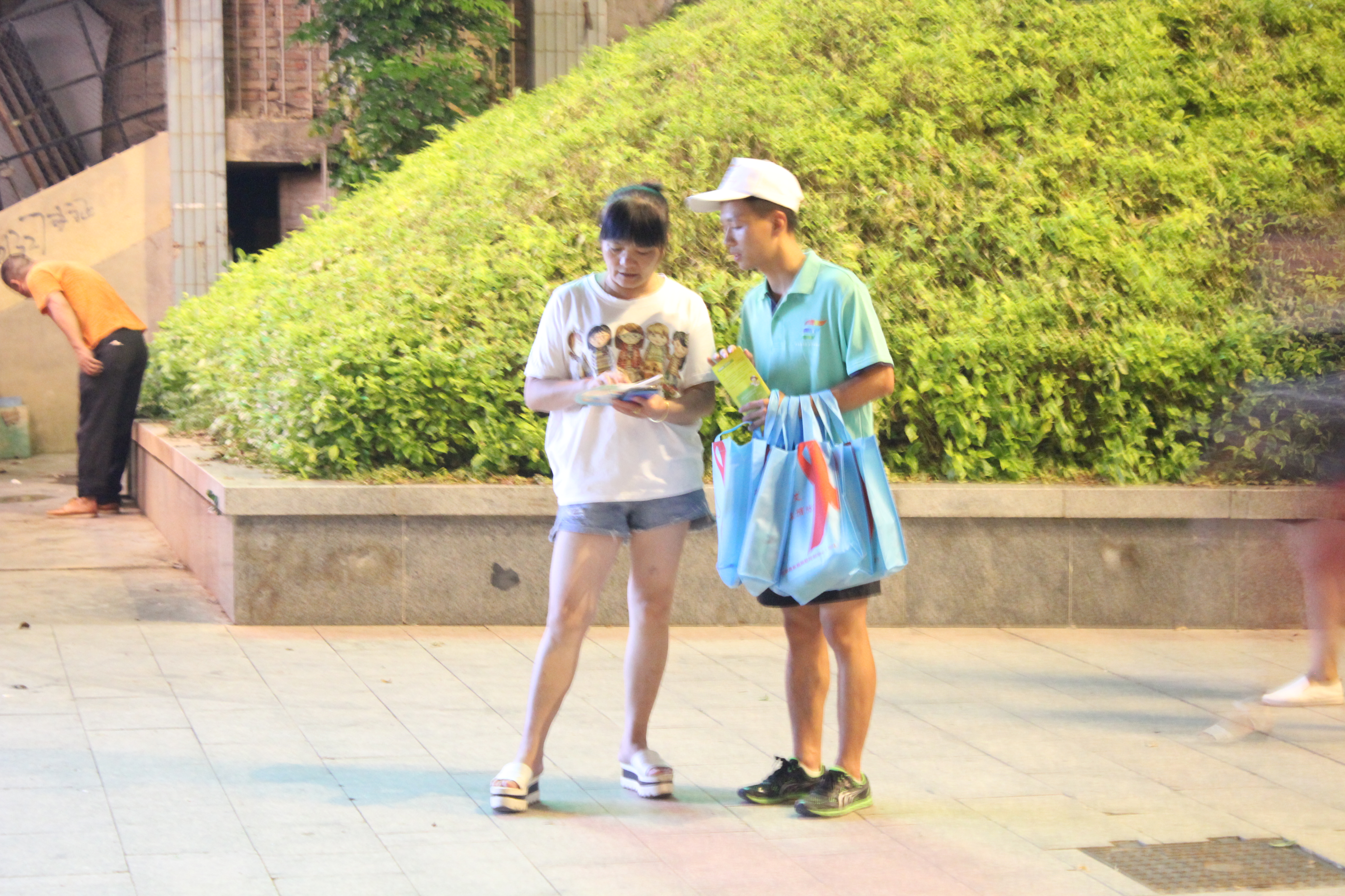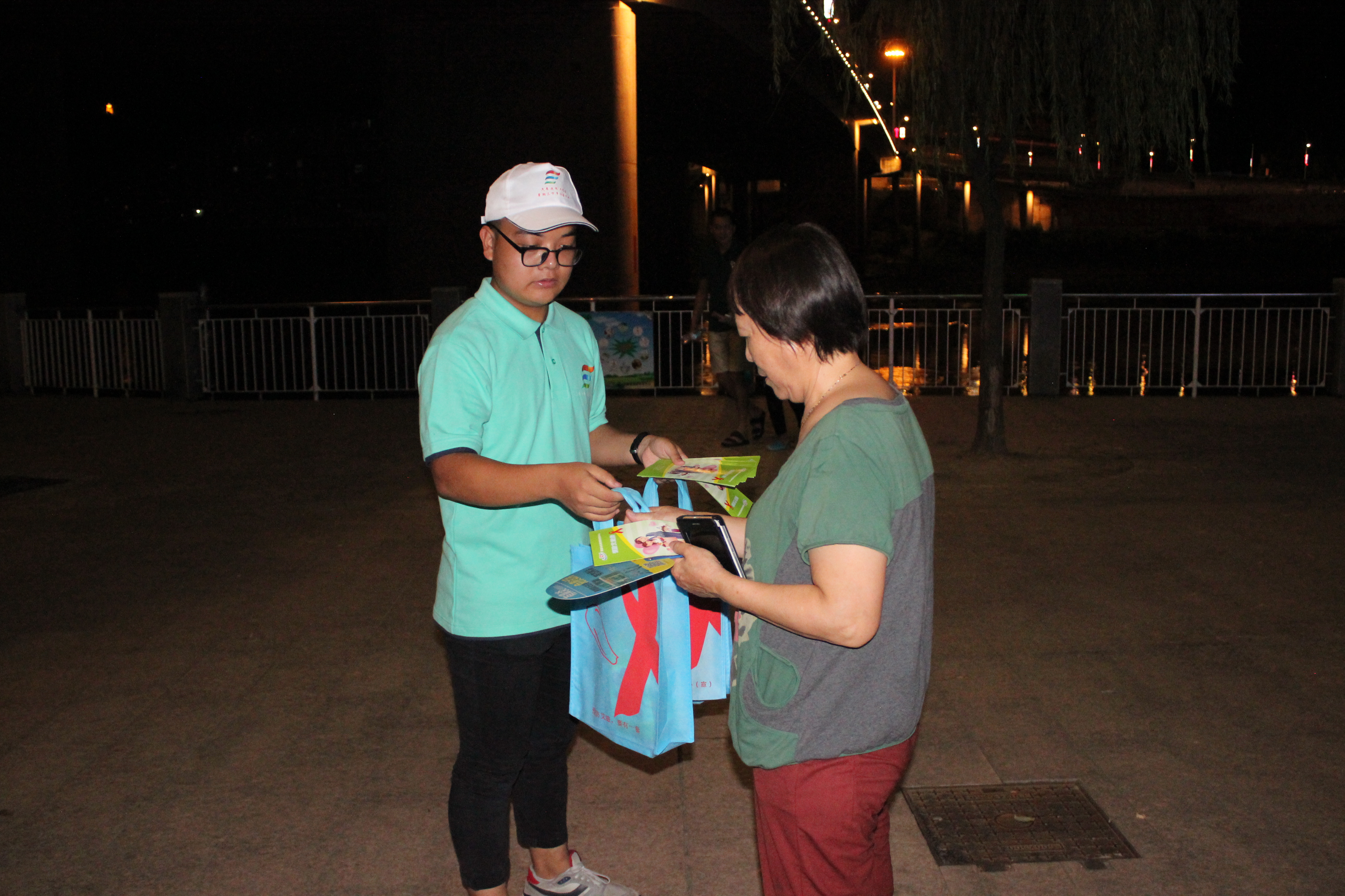 7月9日當天并同南平市疾病控制中心的科研室主任和數(shù)位醫(yī)師及我們實踐隊領隊沈曉家老師以及實踐團的師生進行多點宣傳。在疾控中心醫(yī)師的防艾知識普及下,我們得知南平市艾滋發(fā)病率多在40歲以上的中老年人,我系宣傳隊根據(jù)這一特點,選擇下午到傍晚在中老年人活動的密集區(qū)的公園、社區(qū)開展禁毒防艾的宣傳活動。