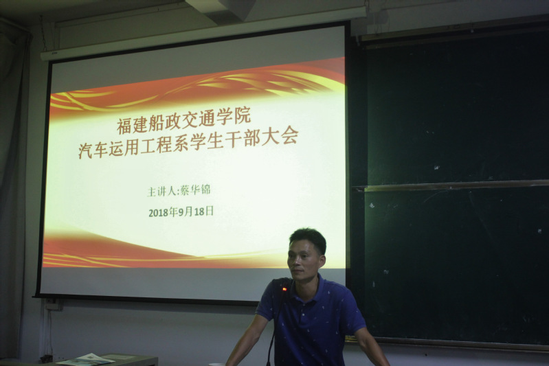 2018年9月18日,在福建船政交通職業(yè)學(xué)院北區(qū)22號(hào)樓407教室舉行了學(xué)生干部大會(huì)報(bào)告。參加報(bào)告的有汽車系教工黨員代表、16級(jí)兩委學(xué)生干部、17級(jí)全體學(xué)生干部以及18級(jí)臨時(shí)負(fù)責(zé)人。報(bào)告由汽車運(yùn)用工程系黨總支書(shū)記蔡華錦主持。