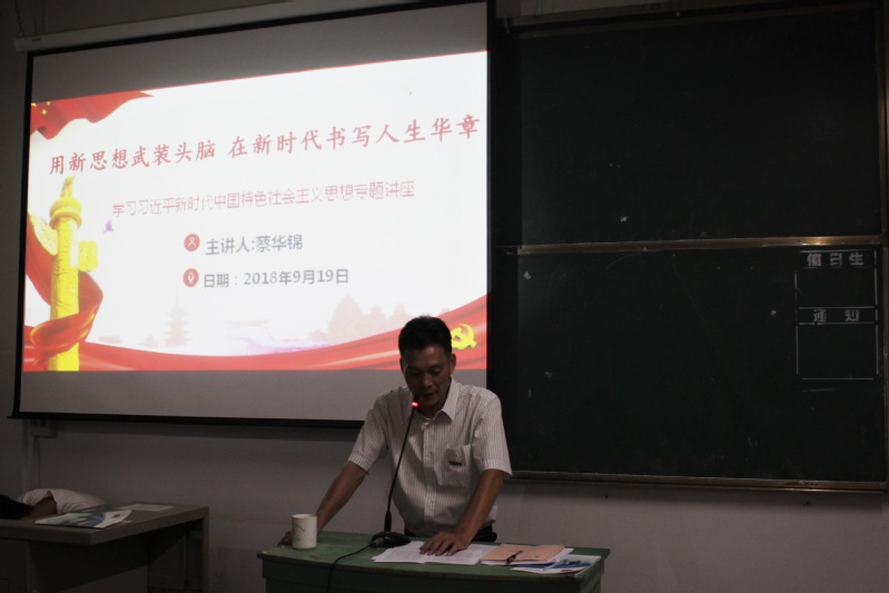 2018年9月19日,在福建船政交通職業(yè)學(xué)院北區(qū)22號(hào)樓407教室舉行了“用新思想武裝頭腦 在新時(shí)代書(shū)寫(xiě)人生華章”的專題講座。參加報(bào)告的有汽車系教工黨員代表、18級(jí)各班臨時(shí)負(fù)責(zé)人以及優(yōu)秀學(xué)生代表。報(bào)告由汽車運(yùn)用工程系黨總支書(shū)記蔡華錦主持。