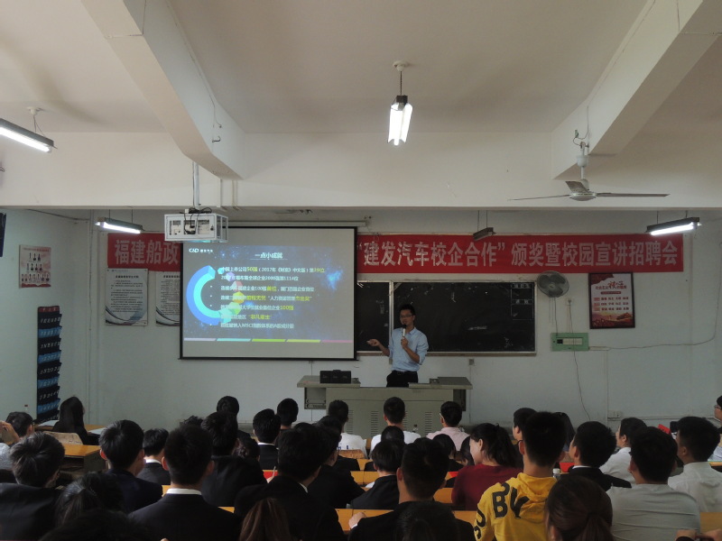 頒獎(jiǎng)活動(dòng)結(jié)束后,廈門建發(fā)汽車面向全系師生做了企業(yè)宣講。來(lái)自廈門、福州、泉州、漳州等地建發(fā)旗下不同品牌的經(jīng)銷店為17級(jí)汽車專業(yè)學(xué)生提供汽車機(jī)電維修、汽車銷售、售后服務(wù)等諸多崗位實(shí)習(xí)機(jī)會(huì),學(xué)生畢業(yè)即就業(yè), 實(shí)現(xiàn)了學(xué)生學(xué)習(xí)與工作崗位需求零距離對(duì)接。
