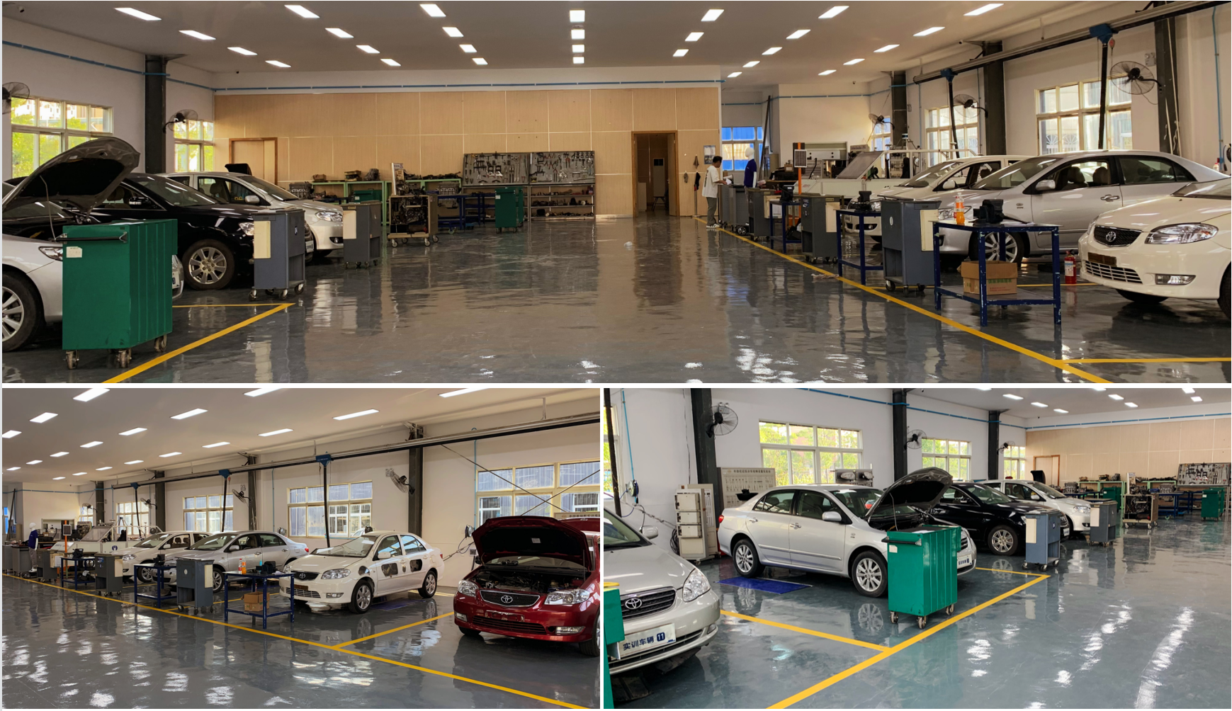 是2005年學(xué)院與豐田汽車公司合作校企共建的校內(nèi)培訓(xùn)基地,面積600平米,包含整車工位8個、發(fā)動機拆裝檢測工位4個,擁有豐田各款式實訓(xùn)整車13輛,發(fā)動機總成4臺,變速器總成8臺,發(fā)動機電控臺架2套,雷克薩斯燈光臺架1套,各系統(tǒng)解剖件十余個,專用工具等。設(shè)備總值500萬元。該實訓(xùn)室能對外開展汽車維修工國家職業(yè)技能等級培訓(xùn)、考證,以及實踐教學(xué),技能鑒定與技術(shù)服務(wù)等功能,如下圖所示。