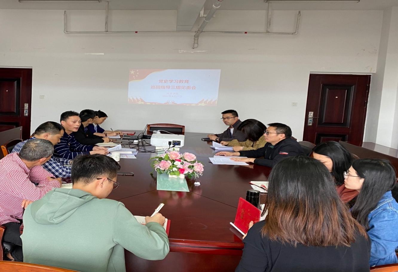 4月28日下午,福建船政交通職業(yè)學(xué)院黨史學(xué)習(xí)教育巡回指導(dǎo)三組一行二人,蒞臨汽車(chē)學(xué)院調(diào)研指導(dǎo)工作,并在汽車(chē)學(xué)院9樓會(huì)議室召開(kāi)見(jiàn)面會(huì)。汽車(chē)學(xué)院黨政負(fù)責(zé)人、副科級(jí)以上干部、黨總支委員、各黨支部委員參加會(huì)議。