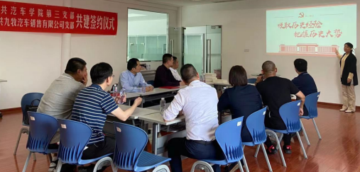 隨后學(xué)院第三黨支部和企業(yè)黨支部互相贈(zèng)送黨員學(xué)習(xí)教材;并由第三黨支部副書(shū)記為企業(yè)黨員們上了一堂《學(xué)好四史 牢記初心使命》的黨課,引導(dǎo)現(xiàn)場(chǎng)黨員不忘記初心使命,朝著學(xué)史明理、學(xué)史增信、學(xué)史崇德、學(xué)史力行等方向前進(jìn)。