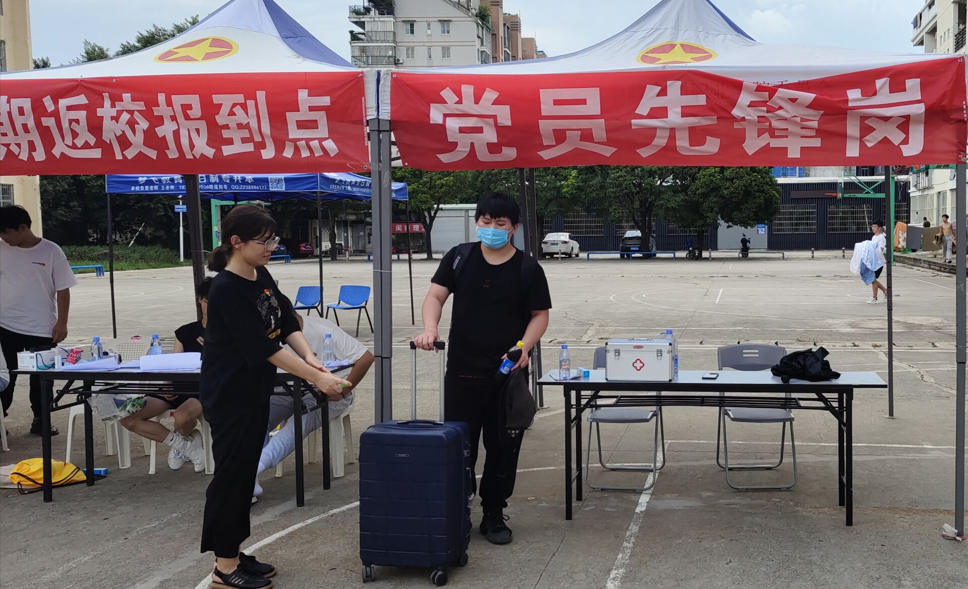 黨員志愿者為返校學(xué)生進(jìn)行體溫檢測