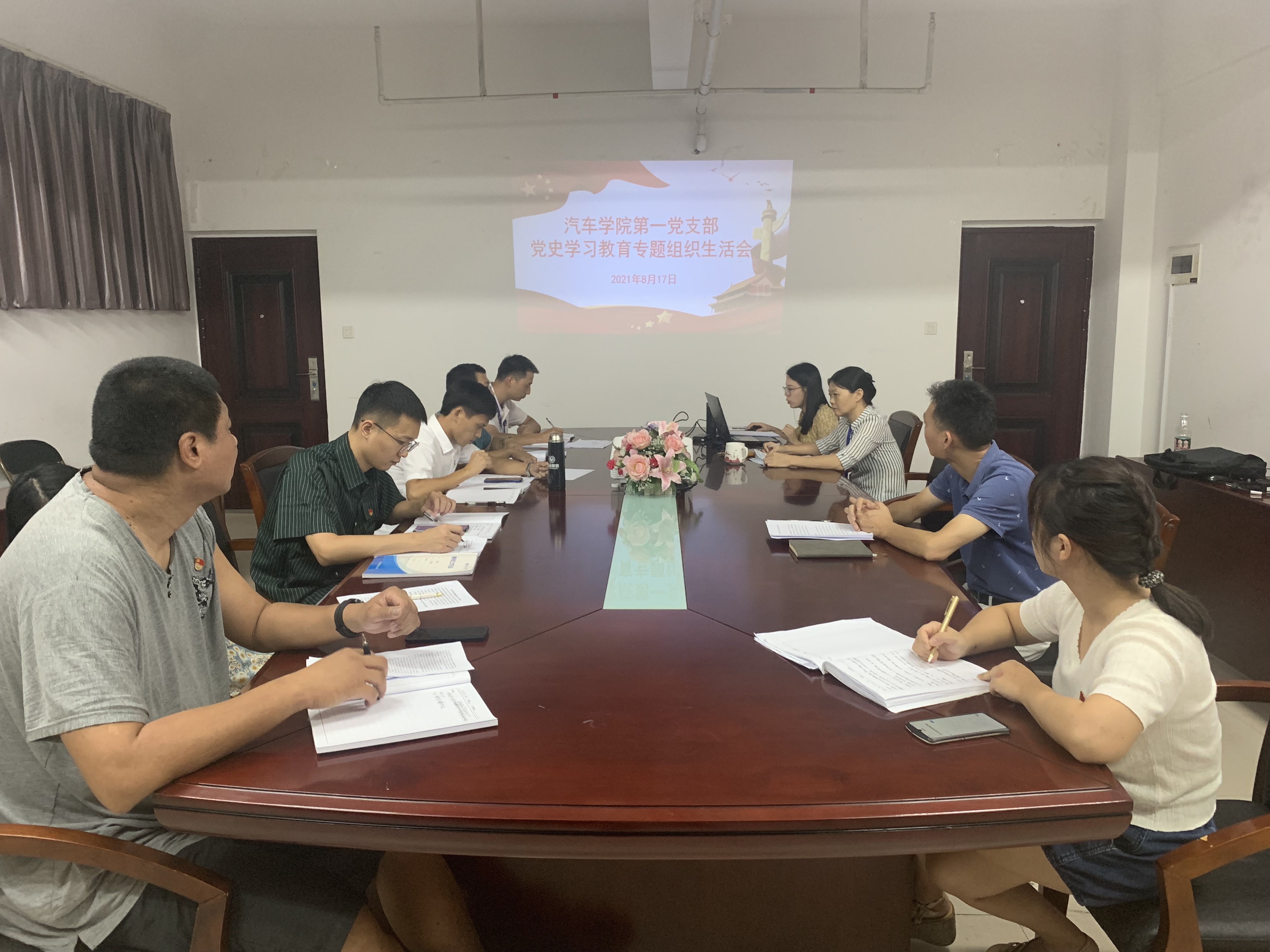 為深入推進(jìn)黨史學(xué)習(xí)教育,2021年8月17日,汽車學(xué)院第一黨支部按照黨史學(xué)習(xí)教育工作方案要求,圍繞“學(xué)黨史、悟思想、辦實(shí)事、開新局”主題,在圖書館九樓會議室召開黨史學(xué)習(xí)教育專題組織生活會,會議由黨支部書記姚美妃主持,支部黨員參加。學(xué)院巡回指導(dǎo)三組組長黨政辦主任余友輝參加會議。