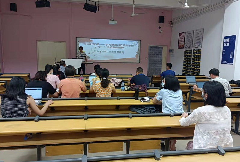 9月22日,汽車學(xué)院第二黨支部書記蘇慶列圍繞《習(xí)近平總書記“七一”重要講話精神》講授專題黨課,支部全體黨員干部聆聽(tīng)報(bào)告。
