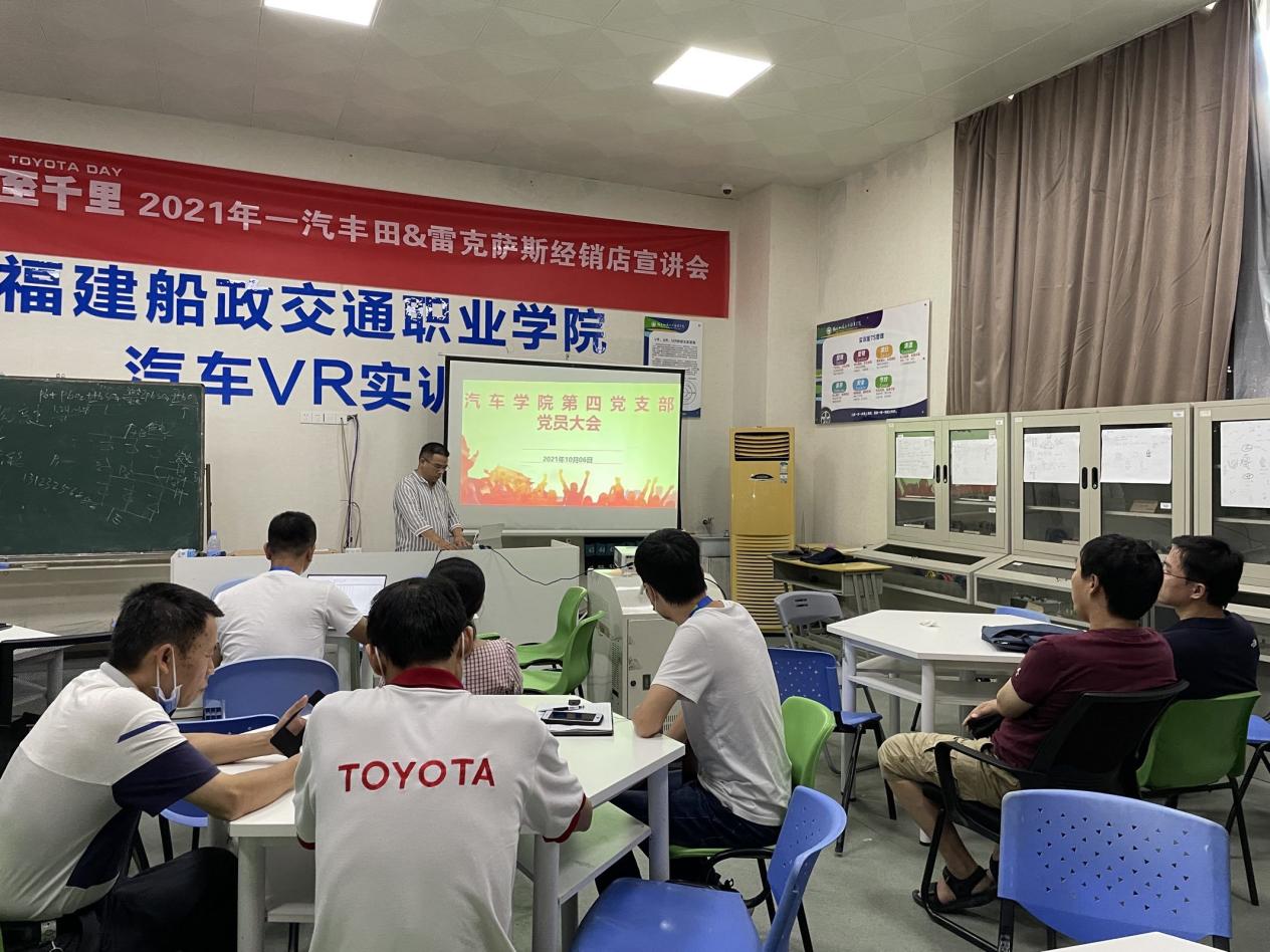 20211006日下午豐田教室,汽車學院第四黨支部副書記余庚主持召開10月黨日專題學習會。
