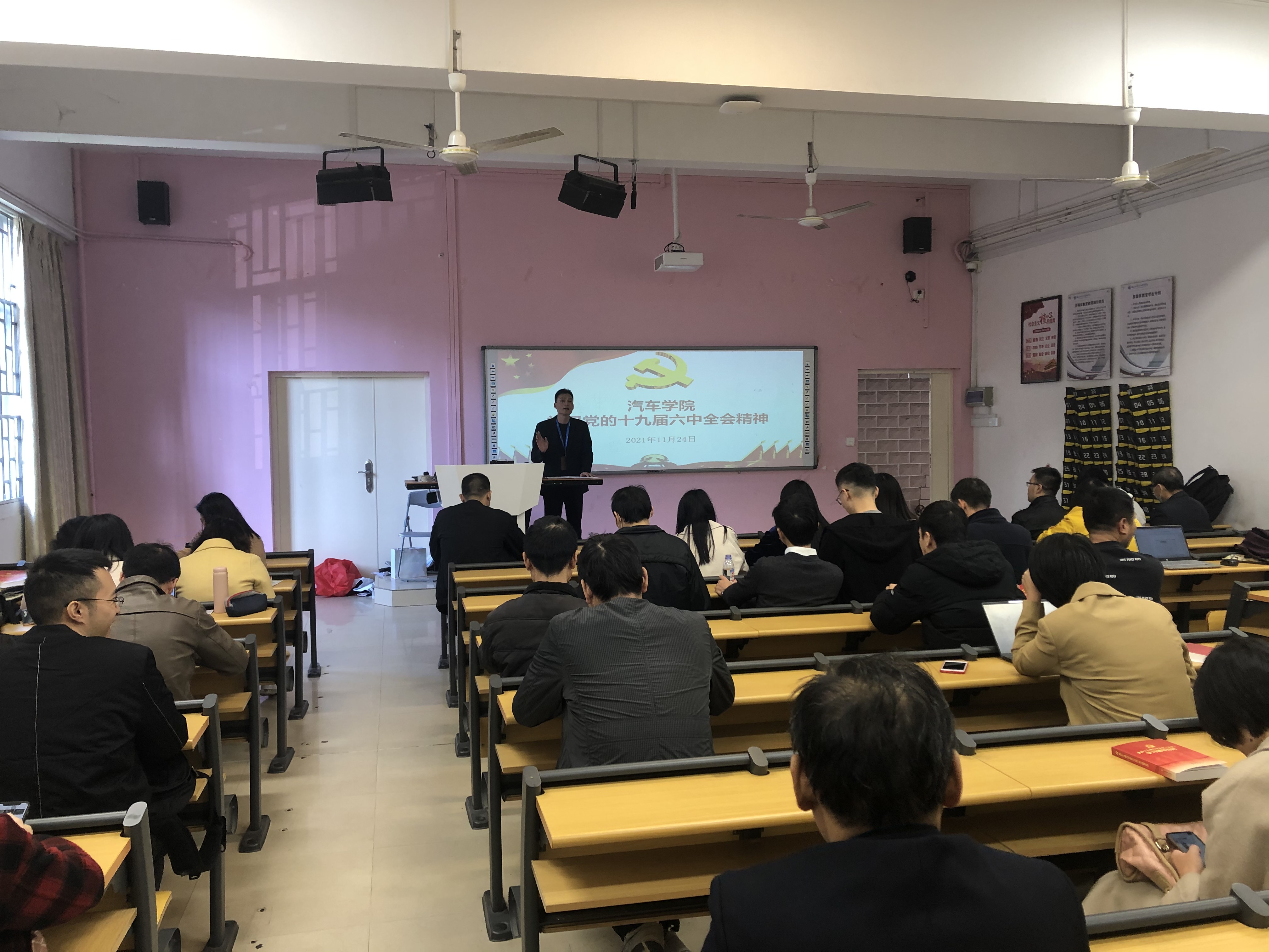 11月8日至11日,中國共產(chǎn)黨第十九屆中央委員會(huì)第六次會(huì)議在北京召開。這次全會(huì)是在中國共產(chǎn)黨成立100周年的重要時(shí)刻,在“兩個(gè)一百年”奮斗目標(biāo)歷史交匯的關(guān)鍵節(jié)點(diǎn)上召開的一次重要會(huì)議。11月24日下午,汽車學(xué)院組織全體黨員、教職工召開學(xué)習(xí)大會(huì),專題學(xué)習(xí)貫徹黨的十九屆六中全會(huì)精神。汽車學(xué)院黨總支書記主持學(xué)習(xí)并講話。