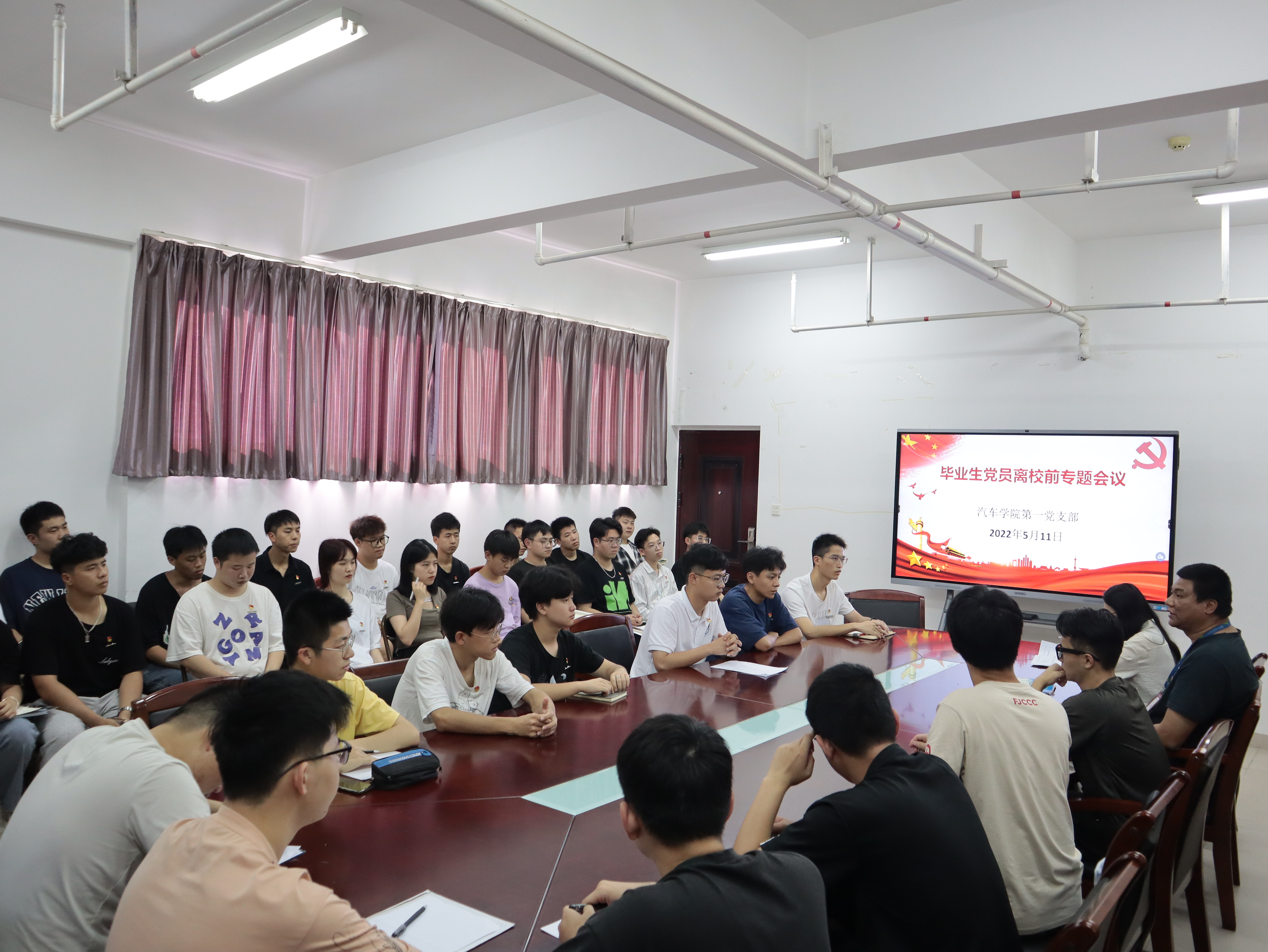 為加強(qiáng)畢業(yè)生黨員教育,引導(dǎo)和鼓勵(lì)廣大畢業(yè)生黨員堅(jiān)定理想信念,發(fā)揮好黨員先鋒模范作用。2022年5月11日,汽車學(xué)院第一黨支部在圖書館九樓會(huì)議室召開畢業(yè)生黨員離校前專題教育。此次專題教育以“永葆初心,砥礪奮進(jìn)”為主題,汽車學(xué)院第一黨支部書記姚美妃老師主持。