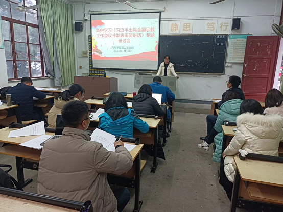 1月10日,汽車學(xué)院第二黨支部開展學(xué)習(xí)《習(xí)近平主席全國(guó)宗教工作會(huì)議并發(fā)表重要講話》專題研討會(huì)。支部書記蘇慶列強(qiáng)調(diào)要把學(xué)習(xí)貫徹好會(huì)議精神作為重要政治任務(wù),堅(jiān)持以習(xí)近平新時(shí)代中國(guó)特色社會(huì)主義思想為指導(dǎo),充分認(rèn)識(shí)宗教工作的特殊重要性,完整準(zhǔn)確全面領(lǐng)會(huì)和貫徹新時(shí)代黨的宗教工作理論和方針政策,增強(qiáng)做好宗教工作的責(zé)任感和使命感,不斷開創(chuàng)學(xué)院宗教工作新局面。