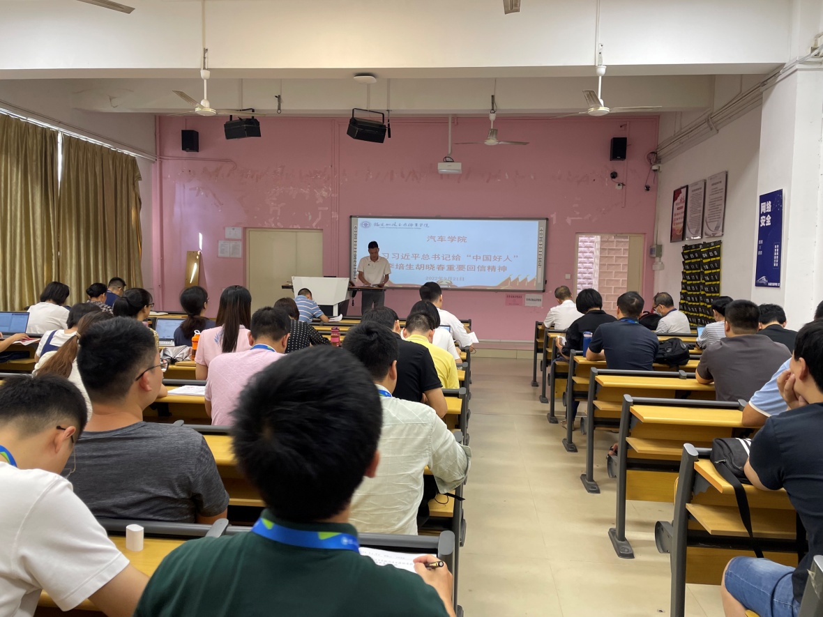 9月21日,汽車學(xué)院黨總支傳達(dá)學(xué)習(xí)習(xí)近平總書記給“中國(guó)好人”李培生、胡曉春重要回信精神,全體教職工參加學(xué)習(xí)。