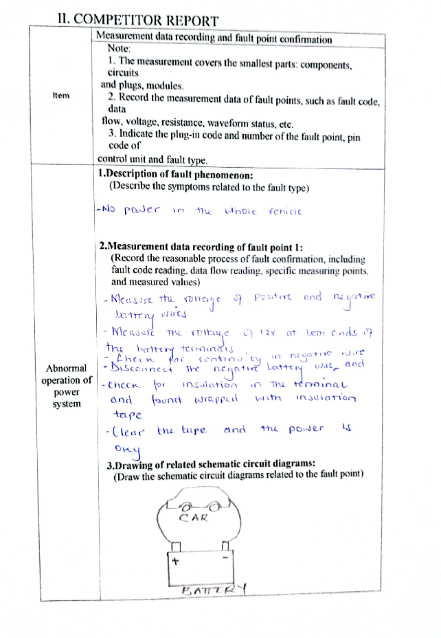 汽車技術(shù)賽項(xiàng)采用實(shí)操考核形式,分“汽車發(fā)動(dòng)機(jī)拆裝檢修”、“汽車電氣系統(tǒng)檢修”兩個(gè)模塊。重點(diǎn)考查參賽隊(duì)安全生產(chǎn)、組織管理、現(xiàn)場(chǎng)問題的分析與處理、工作效率等職業(yè)技能與素養(yǎng),營(yíng)造中外職業(yè)院校師生同臺(tái)競(jìng)技,合作交流的競(jìng)賽氛圍。
