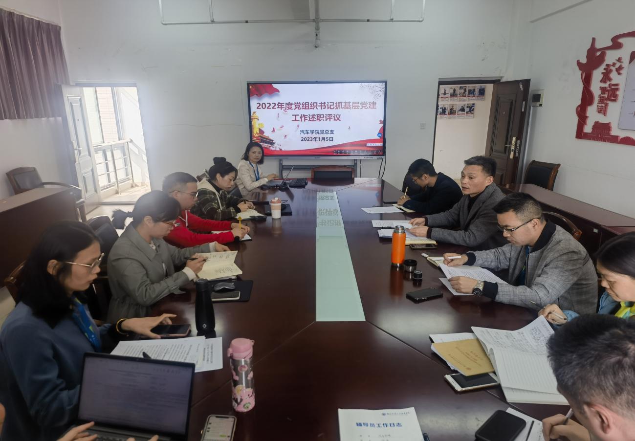 2023年1月5日下午,汽車學(xué)院黨總支在鑒知樓910會議室召開2022年度基層黨組織書記抓基層黨建述職評議考核會,會議由汽車黨總支蔡華錦書記主持,學(xué)院黨總支委員、黨政班子成員、各黨支部書記、副書記、組織員參加了會議。