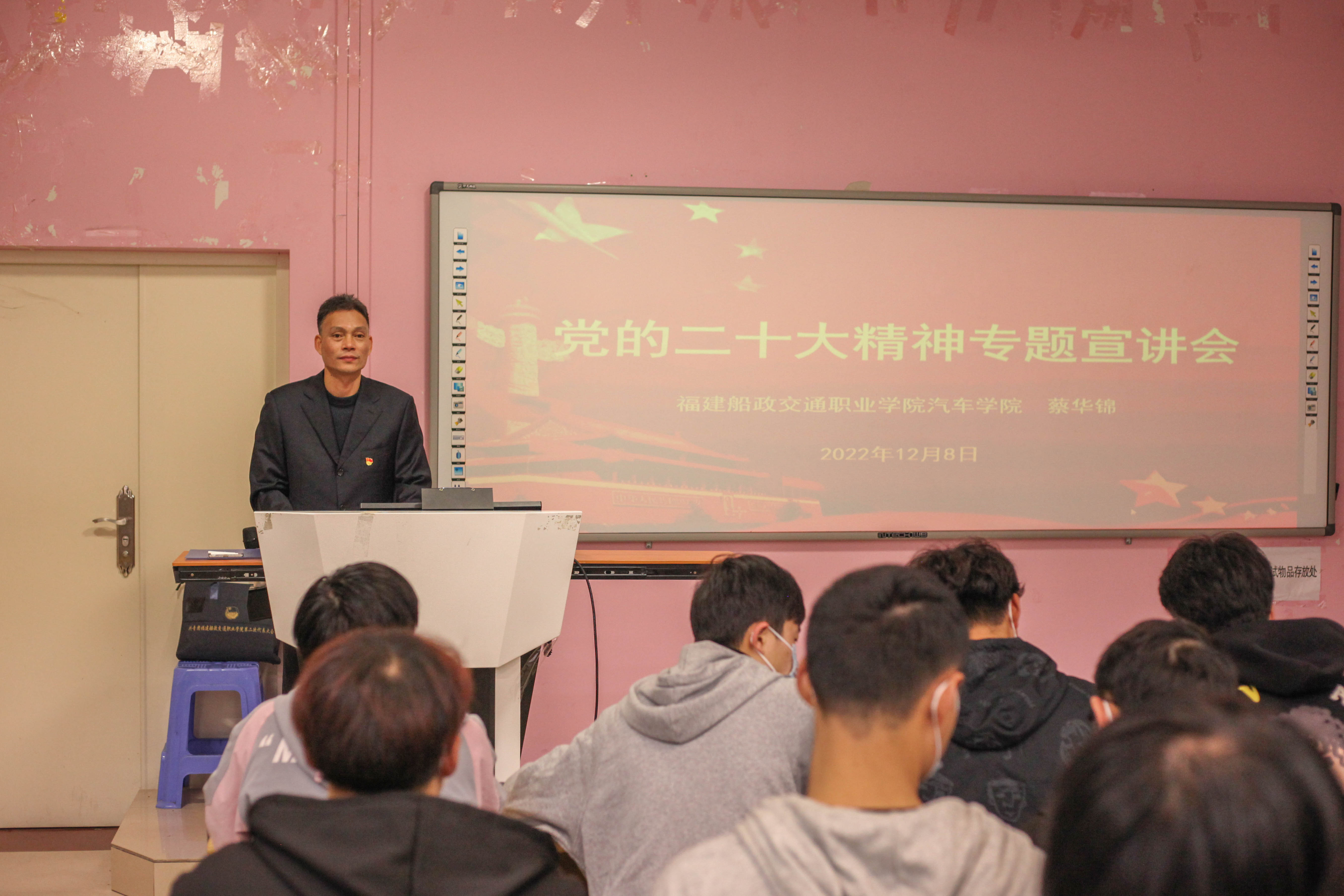為學(xué)習(xí)宣傳黨的二十大精神,勉勵(lì)青年大學(xué)生賡續(xù)血脈、堅(jiān)定理想,激揚(yáng)奮進(jìn)、貢獻(xiàn)力量,2022128日汽車學(xué)院在北區(qū)2號(hào)樓1-3教室組織開展黨的二十大精神專題宣講會(huì)。本次宣講會(huì)由汽車學(xué)院黨總支書記蔡華錦主講,汽車學(xué)院學(xué)生代表現(xiàn)場(chǎng)聆聽。