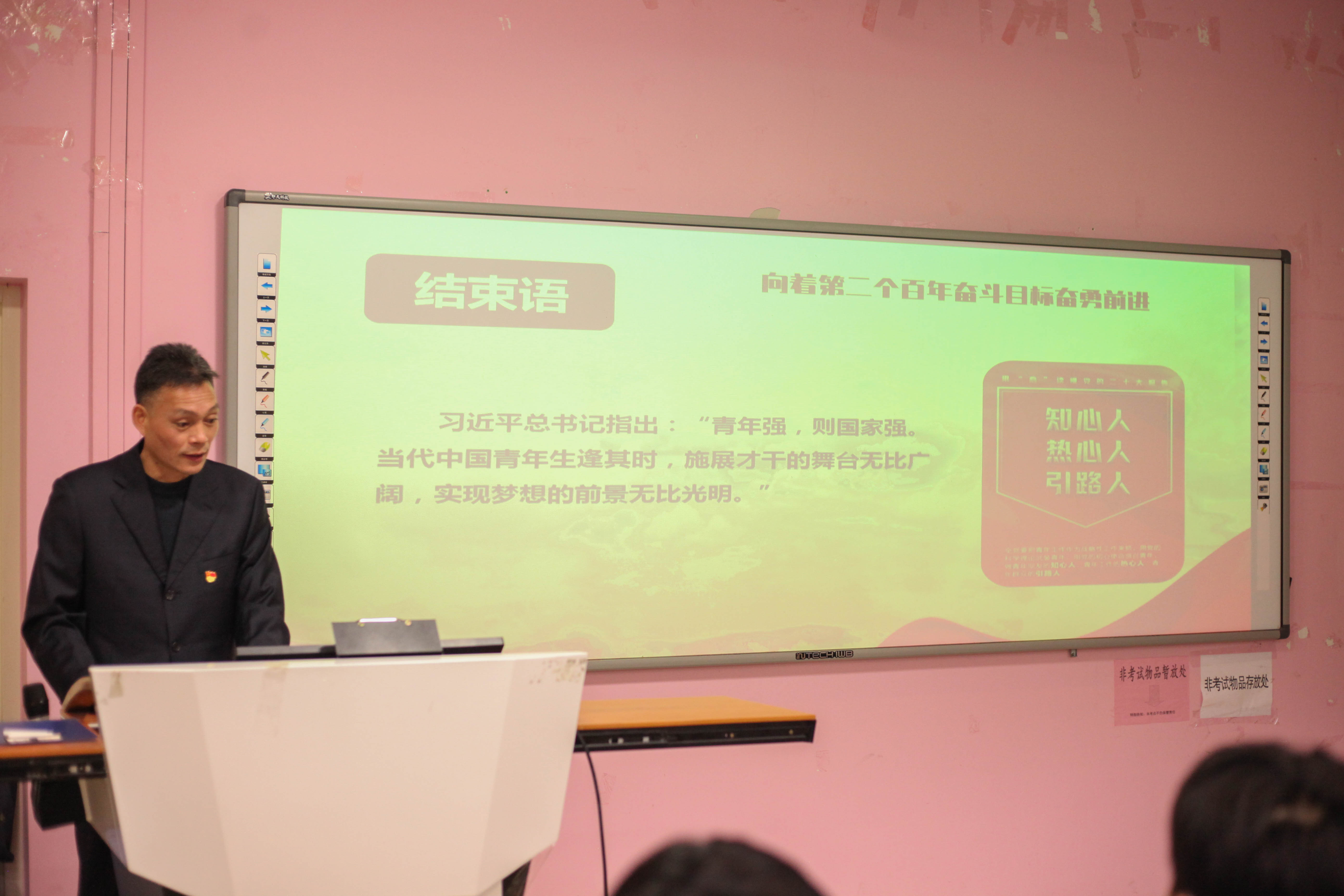 蔡華錦書記從“黨的二十大主題:大會(huì)內(nèi)容和精神的高度概括”、“過(guò)去5年的工作和新時(shí)代10年的偉大變革”、“開辟馬克思主義中國(guó)化時(shí)代化新境界”、“以中國(guó)式現(xiàn)代化全面推進(jìn)中華民族偉大復(fù)興、“黨和國(guó)家事業(yè)的新部署新要求、“堅(jiān)定不移推進(jìn)全面從嚴(yán)治黨的部署和要求、“努力推動(dòng)職業(yè)教育高質(zhì)量發(fā)展的若干思考七個(gè)方面展開宣講。引導(dǎo)青年學(xué)生們對(duì)中國(guó)式現(xiàn)代化知其然、知其所以然,弘揚(yáng)偉大建黨精神,自信自強(qiáng)、守正創(chuàng)新,踔厲奮發(fā),勇毅前行,以更飽滿的精神面貌貢獻(xiàn)自己的青春力量。
