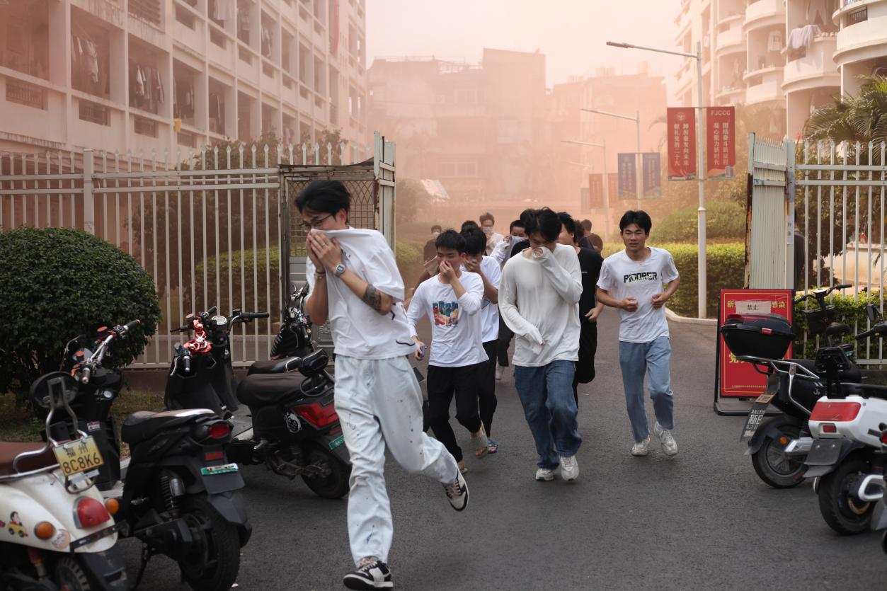 隨著警報(bào)聲響起,汽車學(xué)院全體師生聽(tīng)從廣播系統(tǒng)的指引,迅速組織同學(xué)們拿毛巾浸濕,捂住口鼻,即刻快速遠(yuǎn)離著火點(diǎn),彎腰低頭,有序跟隨指揮人員按疏散路線快速撤離至安全地帶。整個(gè)疏散過(guò)程急而不亂、穩(wěn)定有序,順利地完成此次消防安全疏散逃生演練活動(dòng)。