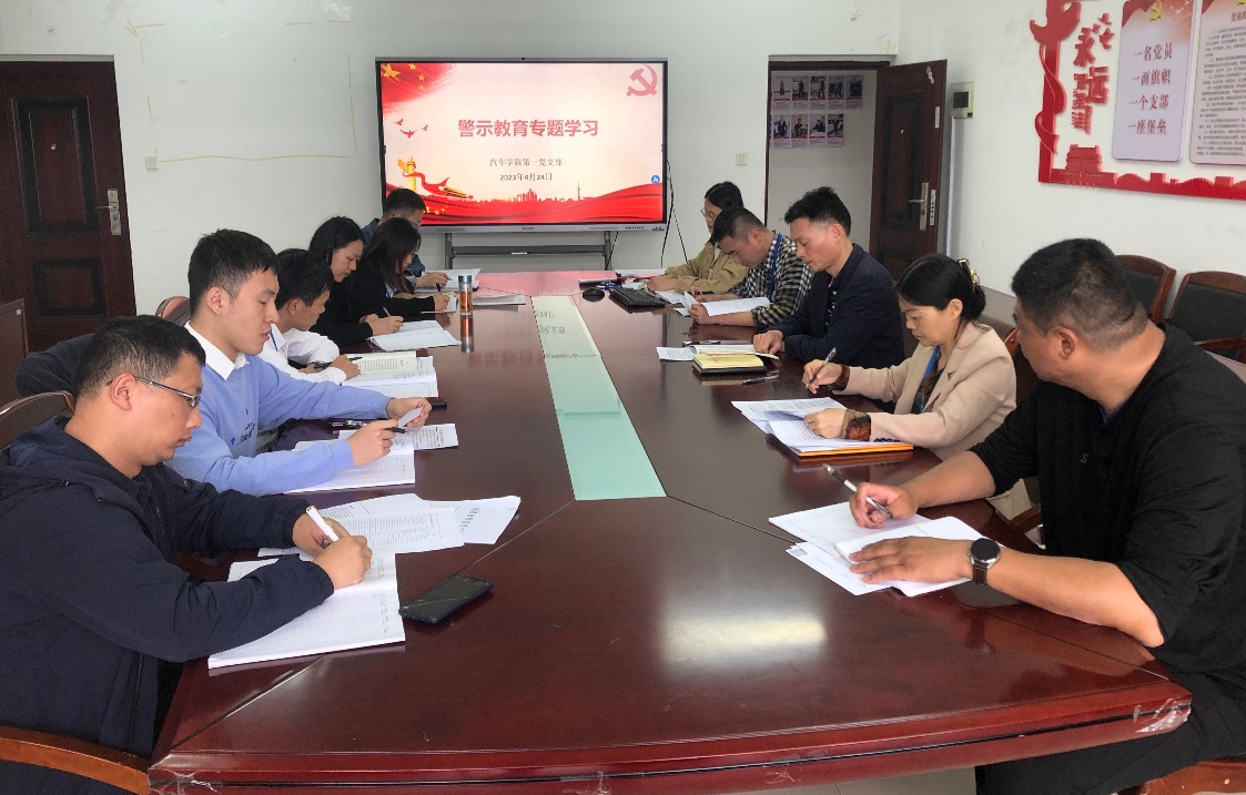 2023年4月24日下午,汽車學(xué)院第一黨支部在鑒知樓910會(huì)議室組織支部黨員開(kāi)展警示教育專題學(xué)習(xí)會(huì)。第一支部書記黃唐芬主持會(huì)議。她結(jié)合主題教育,首先帶領(lǐng)支部黨員學(xué)習(xí)了習(xí)近平總書記關(guān)于反腐倡廉的論述文章《必須把反腐倡廉當(dāng)作政治必修課》(選自《論黨的自我革命》),隨后組織支部學(xué)習(xí)了《警示教育讀本》中的八個(gè)典型案例。黨總支書記蔡華錦參加第一支部的警示專題教育學(xué)習(xí)會(huì),并對(duì)支部主題教育學(xué)習(xí)作指導(dǎo)發(fā)言。