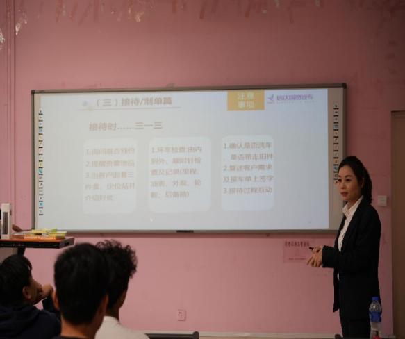 此次講座邀請了廈門信達國貿(mào)汽車集團有限公司金牌培訓(xùn)師林燕玲女士。林燕玲女士為同學(xué)們就如何做好汽車售后服務(wù)崗位的職場規(guī)劃進行指導(dǎo),同時講授了汽車銷售技巧、汽車前臺接待等方面的內(nèi)容,通過此次講座,學(xué)生們得以全面了解4S店的運營模式以及銷售、接待、維修、保養(yǎng)等各個環(huán)節(jié)的基本知識與接待技巧。