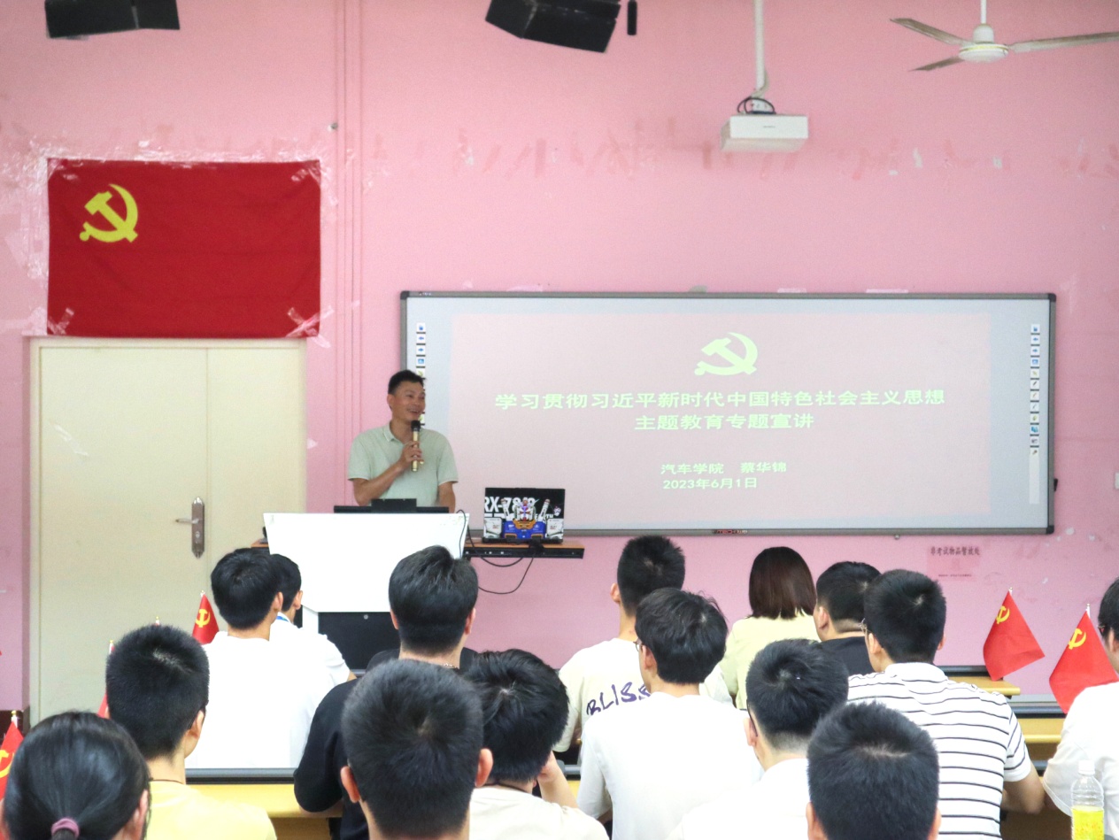 為了深入學習貫徹習近平新時代中國特色社會主義思想,進一步推動開展學習貫徹習近平新時代中國特色社會主義思想主題教育在學院走深做實, 2023年6月1日,汽車學院黨總支蔡華錦書記在自強樓1-3教室開展學習貫徹習近平新時代中國特色社會主義思想主題教育宣講會。輔導員、全體學生黨員參加宣講會。