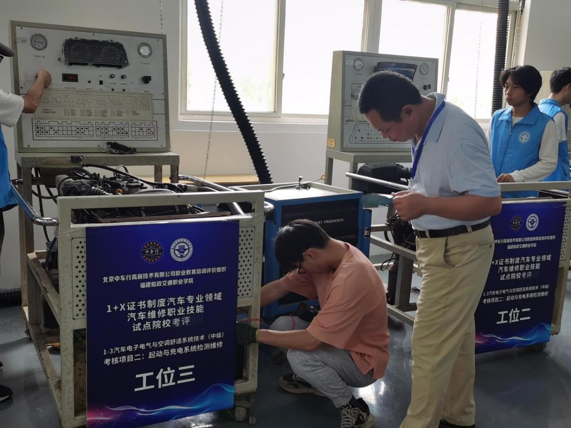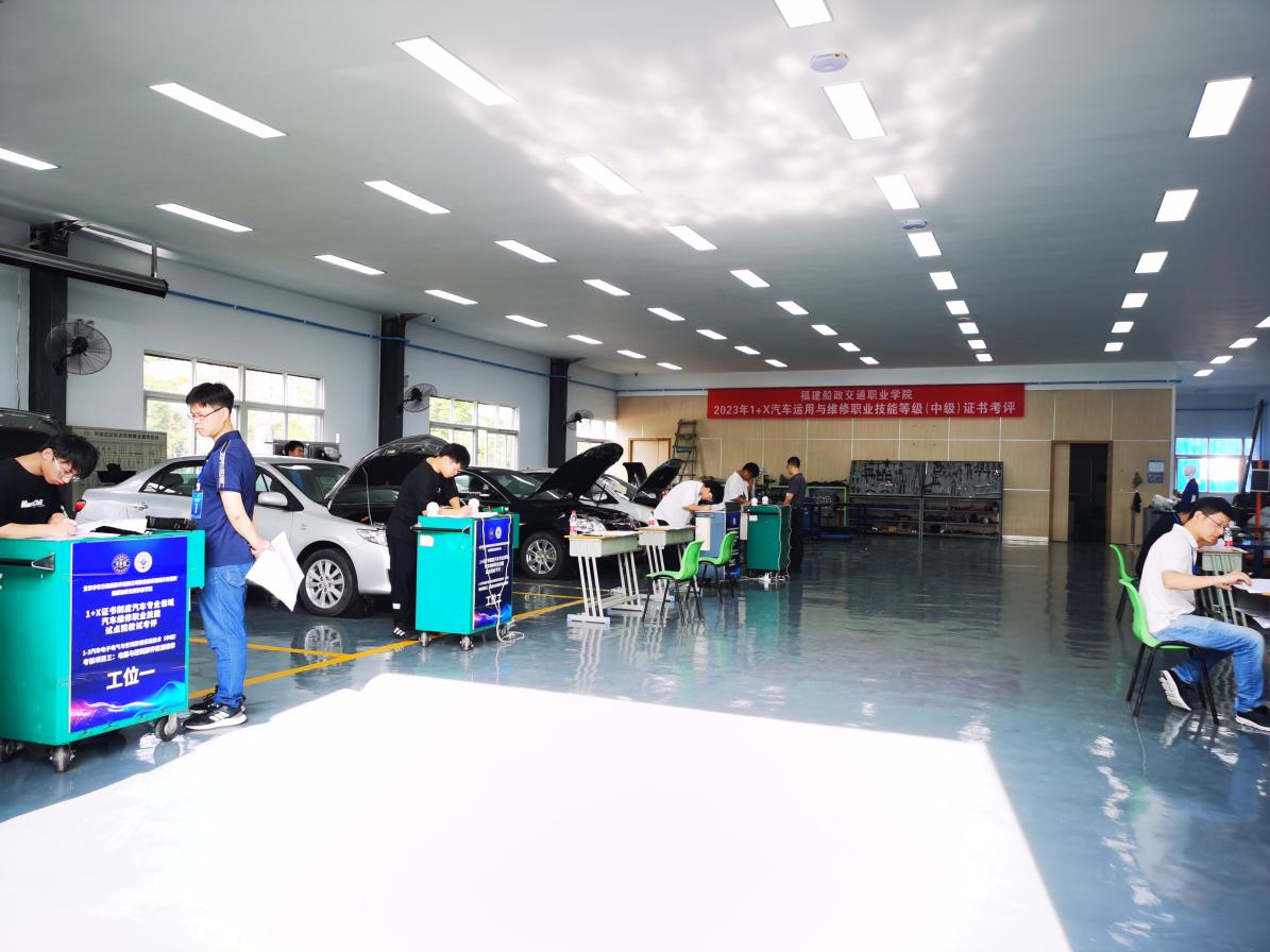 2023年6月25日,福建船政交通職業(yè)學(xué)院“1+X汽車運用與維修”職業(yè)技能等級證書(中級)考核工作圓滿結(jié)束。此次考核4個項目分別在豐田實訓(xùn)室、吉利實訓(xùn)室和發(fā)動機(jī)電控實訓(xùn)室進(jìn)行。我院汽車檢測與維修技術(shù)專業(yè)共有40名學(xué)生參加了“1+X汽車運用與維修”證書考核。