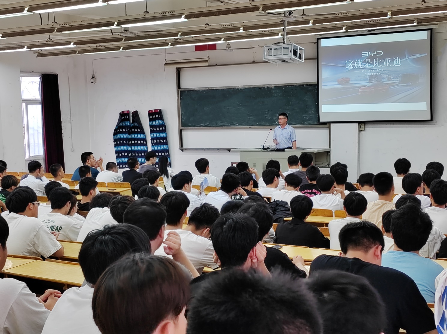 在吉利宣講中,吉利李俊欣總監(jiān)詳細(xì)介紹了吉利汽車公司的發(fā)展歷程、吉利集團(tuán)的構(gòu)成、公司的產(chǎn)品結(jié)構(gòu)、員工發(fā)展體系、公司薪酬福利等內(nèi)容。整個宣講過程,在場每位同學(xué)都認(rèn)真聽講,遇到感興趣問題不時同身邊同學(xué)交流,特別是李俊欣經(jīng)理結(jié)合自身發(fā)展經(jīng)歷介紹吉利公司為員工打造的發(fā)展體系,讓在場的同學(xué)無不感到振奮。
