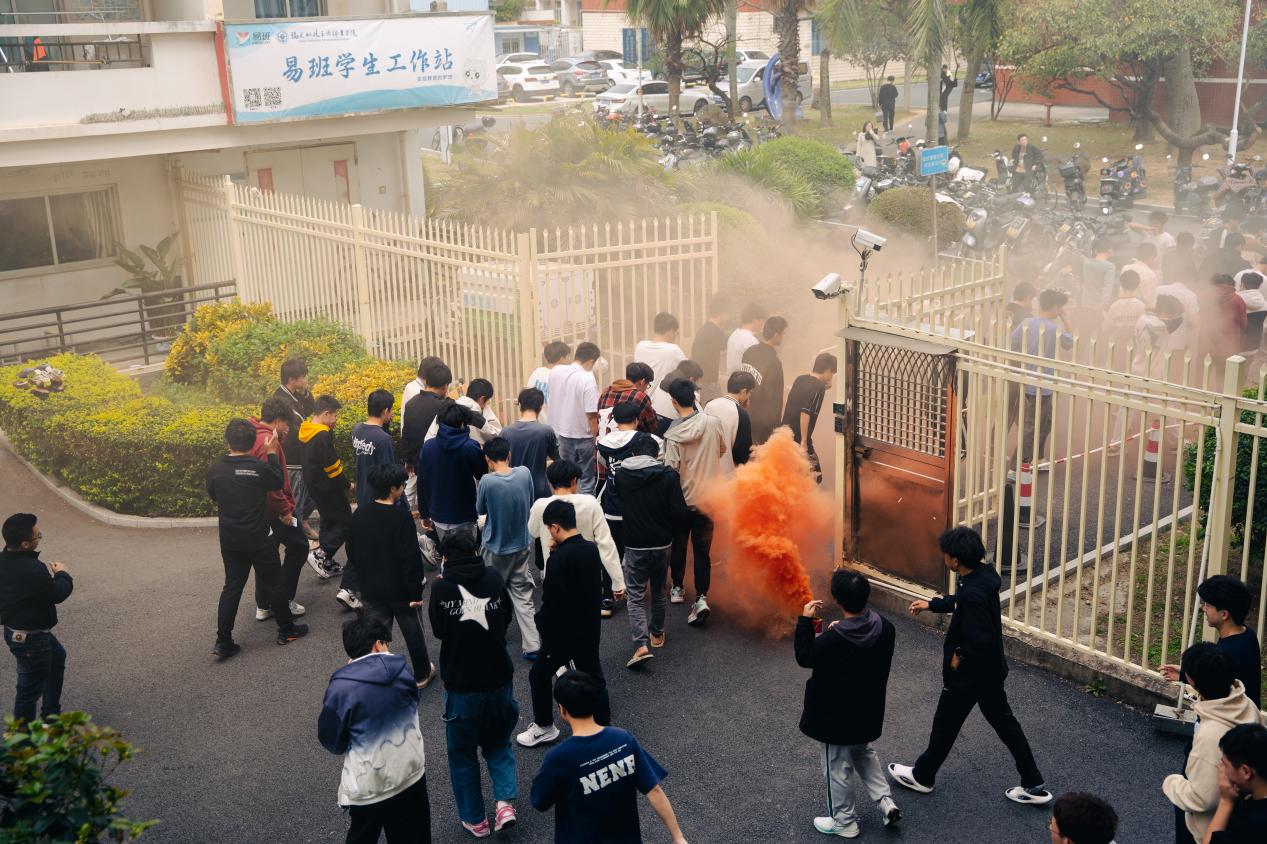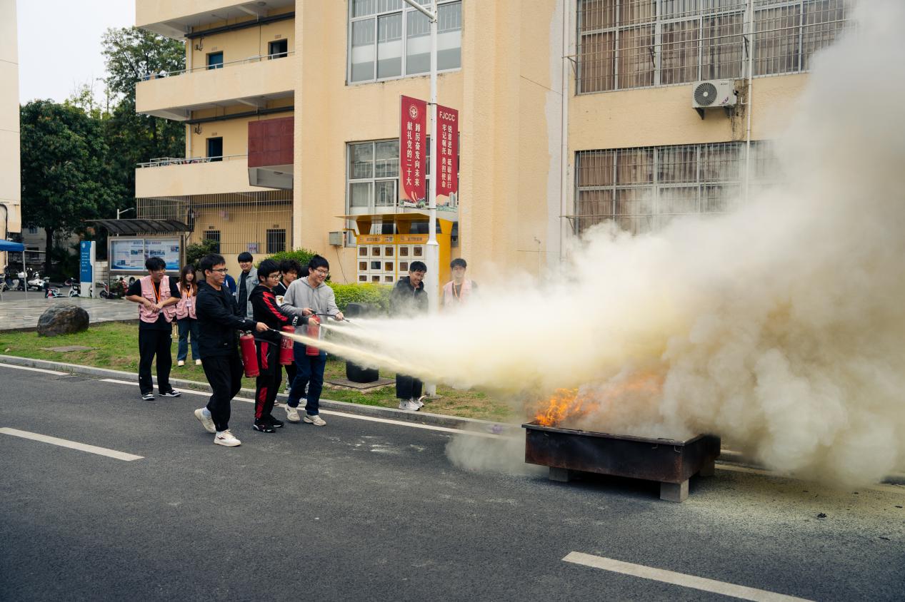 正午時分,隨著警報聲的響起,消防應急疏散演練拉開了帷幕,宿舍樓的同學們在輔導員的指引下,按照事先規(guī)定的逃生路線,高效、有序地進行了撤離,俯下身、捂口鼻,快速跑向安全區(qū)域集中,在應急疏散過程中,紀保部成員、各班班長以及宿舍長緊密配合,確保了同學們的安全撤離。隨后,自律會副主席謝智弘對滅火器的使用方法進行了示范,各班同學積極參與其中,按照“一提、二拔、三握、四壓”的動作要領,成功將火盆中的明火撲滅。