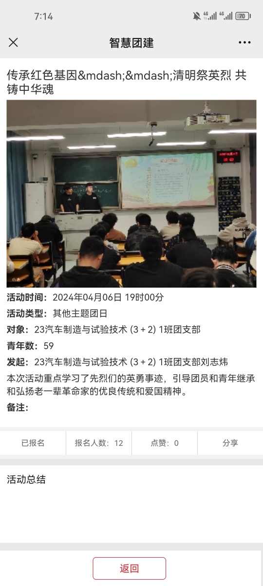 歷史記憶歷久彌新,英烈精神傳承永續(xù)。為學習貫徹習近平新時代中國特色社會主義思想,進一步弘揚愛國主義精神和優(yōu)秀傳統(tǒng)文化,賡續(xù)紅色血脈,傳承紅色基因。汽車學院組織開展“傳承紅色基因—共鑄中華魂”清明祭英烈主題團日活動,通過觀看《緬懷英烈憶長征》紀錄片,引導團員和青年追思革命先烈們艱苦奮斗、為國犧牲的崇高革命精神,自覺繼承和弘揚老一輩革命家的愛國情懷。
