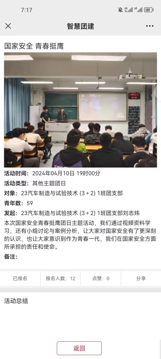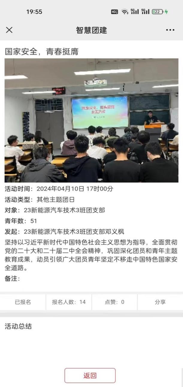各團(tuán)支部結(jié)合智慧團(tuán)建系統(tǒng),通過線上線下雙渠道組織班級同學(xué)參與學(xué)習(xí),以觀看視頻、PPT國家安全知識講解、案例分析和同學(xué)之間互動討論等多種形式,引導(dǎo)團(tuán)員和青年們深入了解國家安全的基本內(nèi)涵,當(dāng)前面臨的復(fù)雜形勢以及在維護(hù)國家安全中的責(zé)任與擔(dān)當(dāng)。深刻體悟到維護(hù)國家安全,每個(gè)人都不是局外人,每個(gè)人都應(yīng)是參與者、踐行者的思想自覺,攜手共筑國家防線。