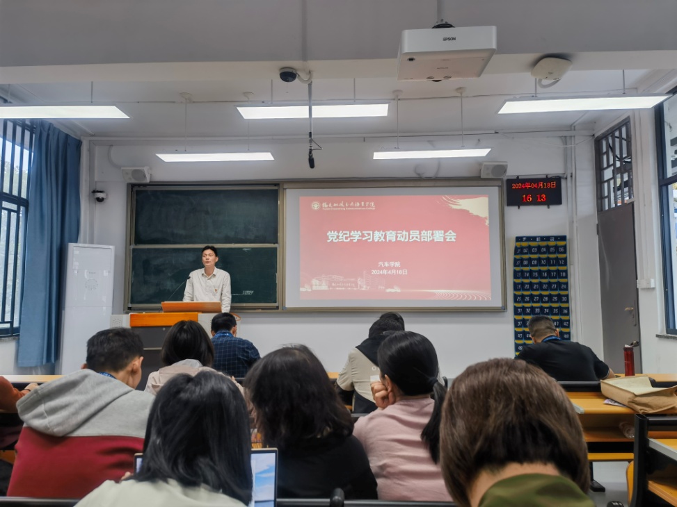 4月18日下午,汽車學院在北區(qū)求是樓召開全體黨員大會,傳達學習習近平總書記關(guān)于黨紀學習教育的重要講話重要指示精神、校黨委關(guān)于開展黨紀學習教育會議精神,部署我院黨紀學習教育工作。會議由黨總支書記蔡華錦主持,學院領導班子、全體黨員參會。