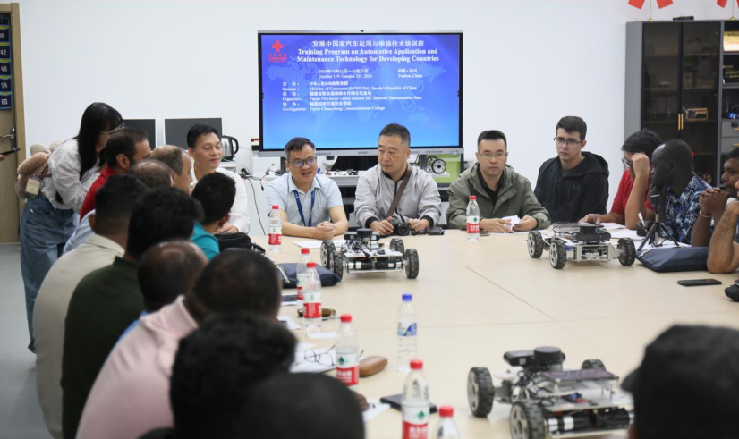 近日,我院協(xié)辦由國(guó)際發(fā)展合作署與商務(wù)部下達(dá)、福建省聯(lián)合國(guó)南合作網(wǎng)示范基地承辦的發(fā)展中國(guó)家汽車運(yùn)用與維修技術(shù)培訓(xùn)班,來(lái)自泰國(guó)、埃及、毛里求斯、巴拉圭、南蘇丹、格林達(dá)納等國(guó)的29名友人來(lái)校學(xué)習(xí)。1024日,學(xué)院黨委書(shū)記陳宜大來(lái)到智能網(wǎng)聯(lián)汽車實(shí)訓(xùn)中心,同正在學(xué)習(xí)的外籍友人們座談,現(xiàn)場(chǎng)詢問(wèn)了此次培訓(xùn)班的課程安排,關(guān)心了學(xué)員的培訓(xùn)、生活情況。