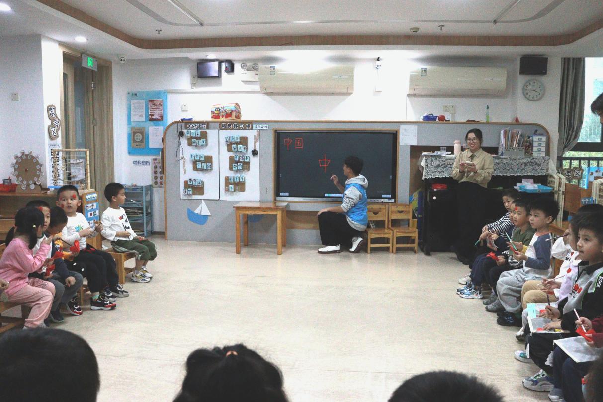 教小朋友們寫“中國”二字體現(xiàn)了對國家認(rèn)同感的啟蒙,讓他們從小建立對國家的認(rèn)知;也是一種文化傳承,開啟小朋友接觸中華漢字文化的大門;更彰顯了愛國情懷的播種,使愛國的意識在幼小心靈中萌芽生長。
