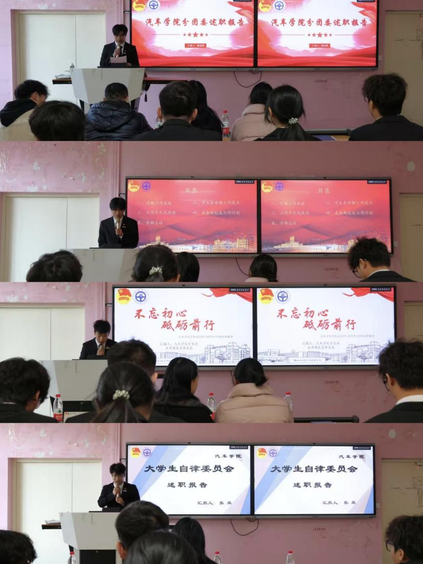 為貫徹落實(shí)習(xí)近平總書(shū)記關(guān)于青年工作的重要論述,聚焦學(xué)院發(fā)展,推動(dòng)團(tuán)學(xué)工作進(jìn)步,強(qiáng)化思想引領(lǐng),提升學(xué)院兩委學(xué)生干部的綜合素質(zhì),汽車(chē)學(xué)院分團(tuán)委于2024年12月18日在北區(qū)2號(hào)樓1-3教室,召開(kāi)了2024-2025學(xué)年第一學(xué)期兩委學(xué)生干部述職大會(huì)。