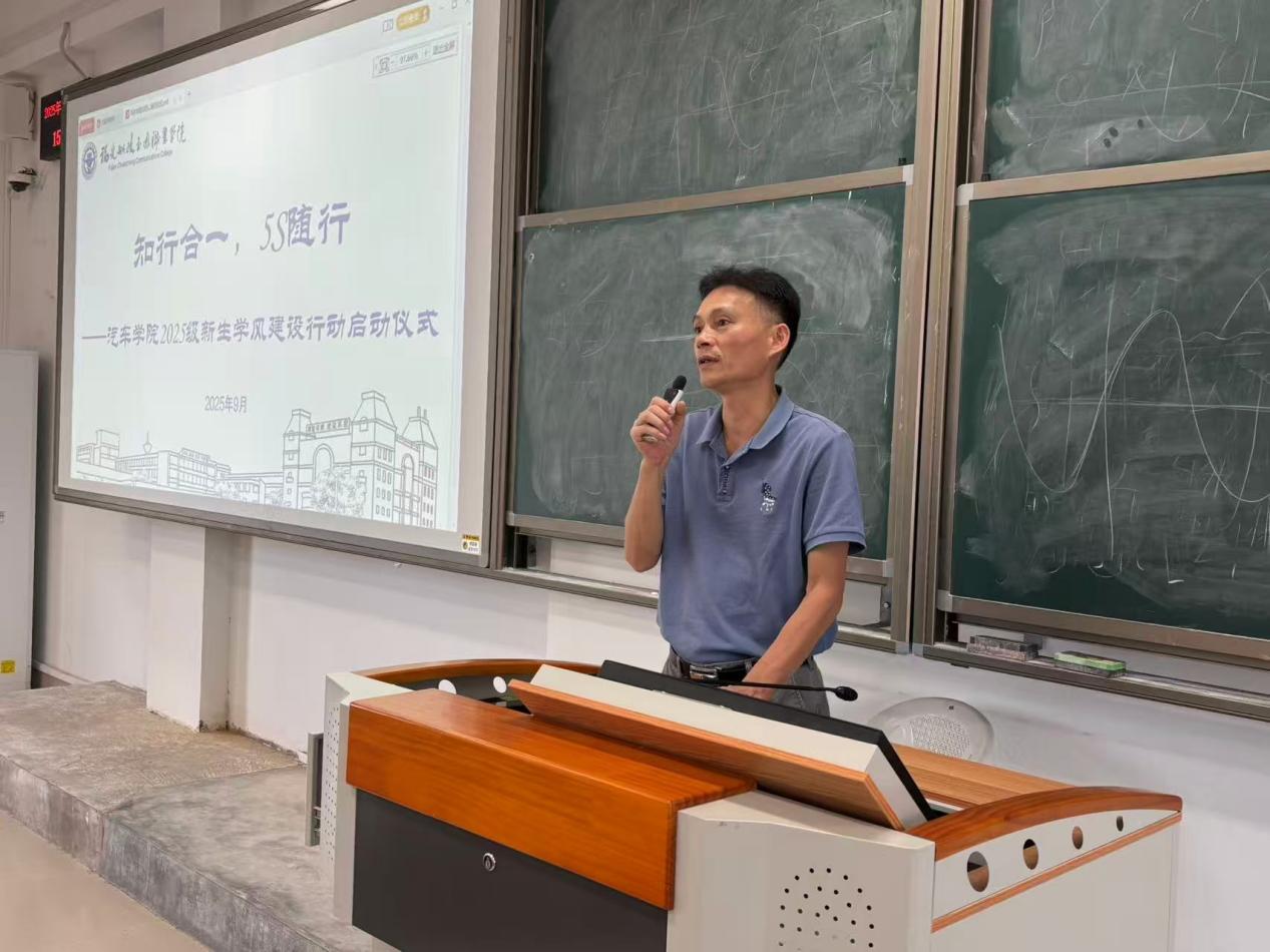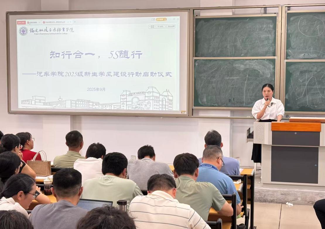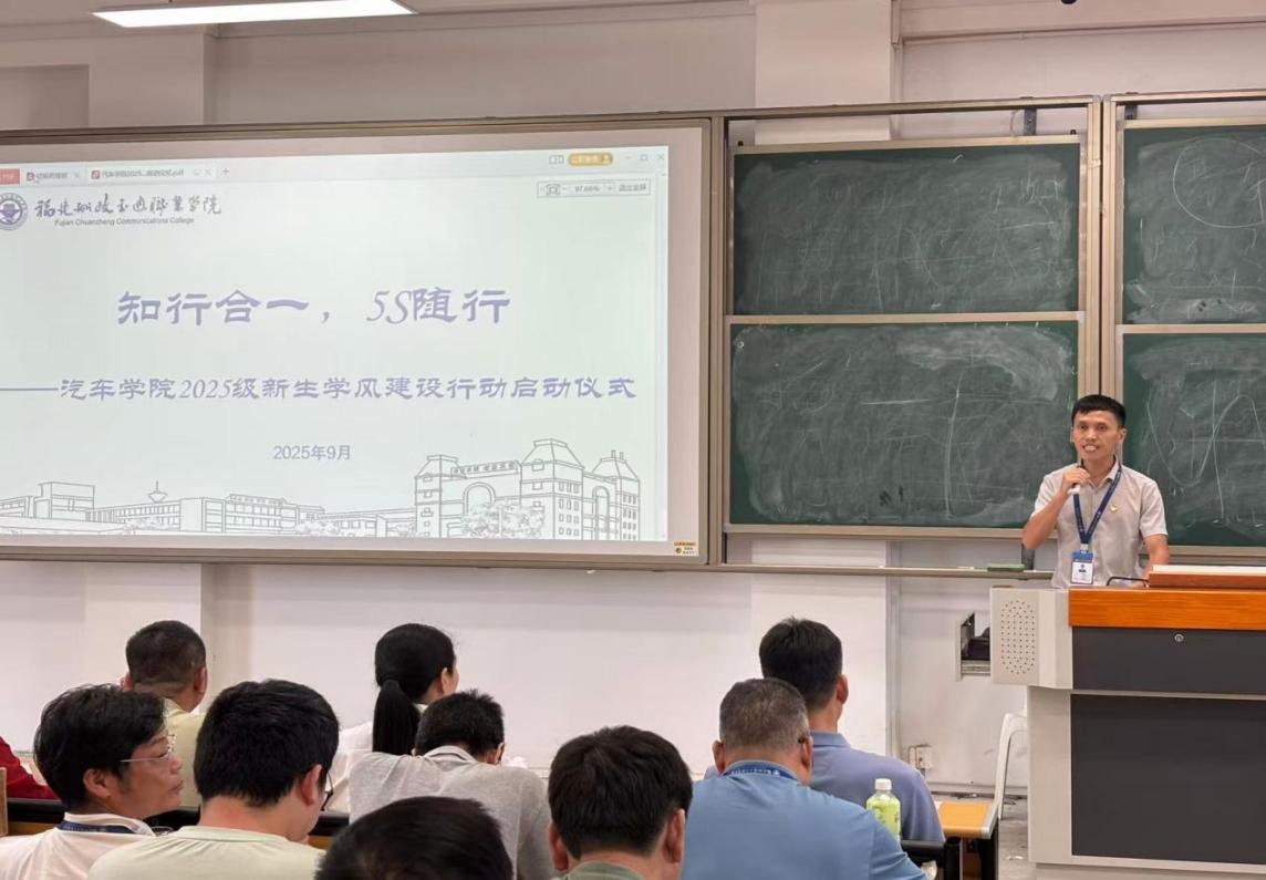 為深入學(xué)習(xí)貫徹黨的二十大精神和習(xí)近平總書記關(guān)于教育工作的重要指示精神,進(jìn)一步加強(qiáng)汽車學(xué)院學(xué)風(fēng)建設(shè),提升人才培養(yǎng)質(zhì)量,汽車學(xué)院于9月24日在北區(qū)26號樓605教室開展以“知行合一、5S隨行”為主題的2025級新生學(xué)風(fēng)建設(shè)啟動儀式。學(xué)院黨政領(lǐng)導(dǎo)、全體教師、輔導(dǎo)員及2024級學(xué)生干部、2025級學(xué)生代表100多人參加此次活動。儀式由學(xué)院副院長林可春主持。