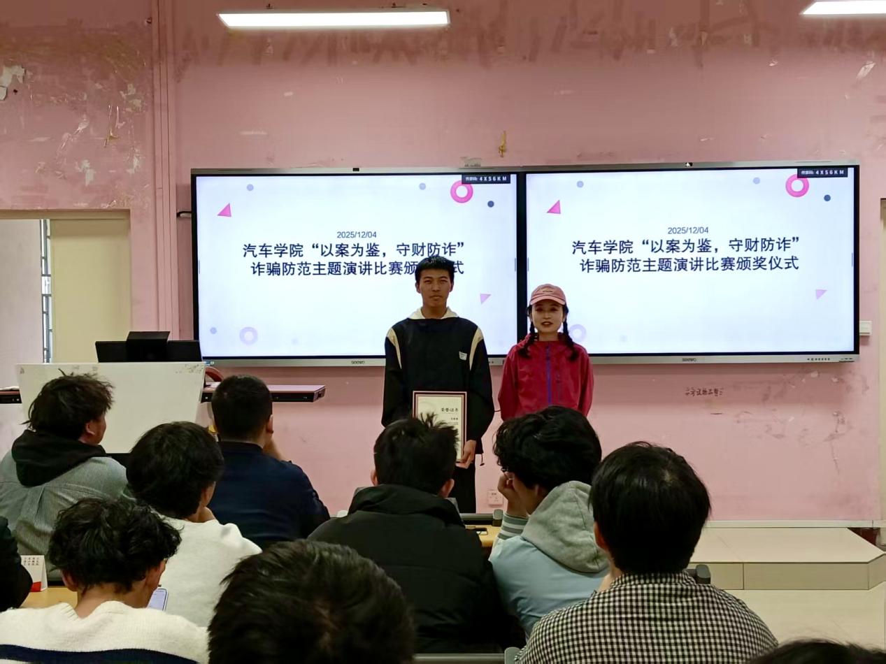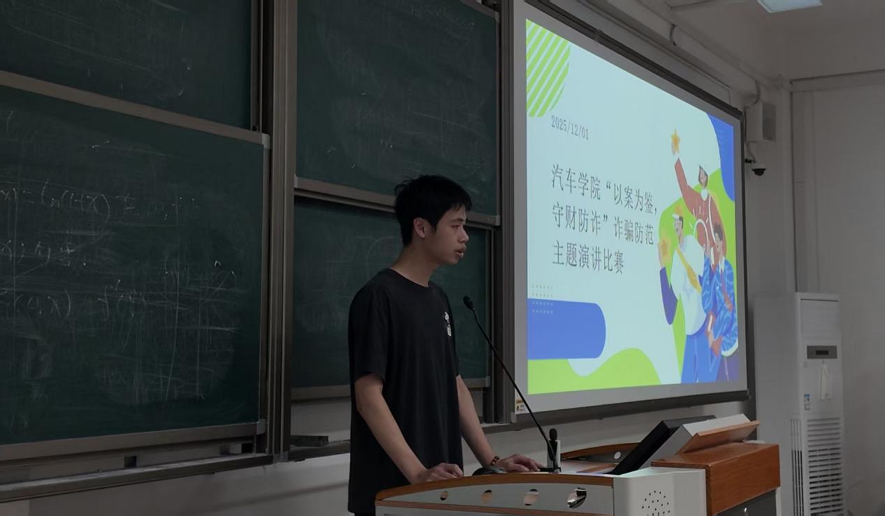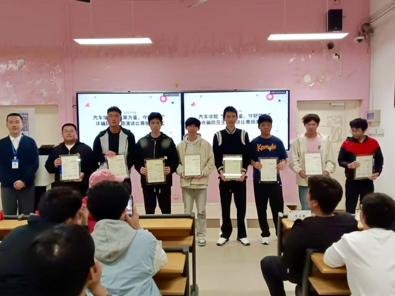 為全面提升廣大在校學(xué)生的防詐意識和能力,有效預(yù)防和減少涉校電信網(wǎng)絡(luò)詐騙犯罪及其關(guān)聯(lián)犯罪的發(fā)生。汽車學(xué)院于2025年12月1日晚19:00在福道園26號樓605教室成功舉辦了“以案為鑒,守財防詐”防范電信網(wǎng)絡(luò)詐騙主題演講活動,參賽選手、輔導(dǎo)員、學(xué)院兩委骨干、學(xué)生代表共計112人參加活動。